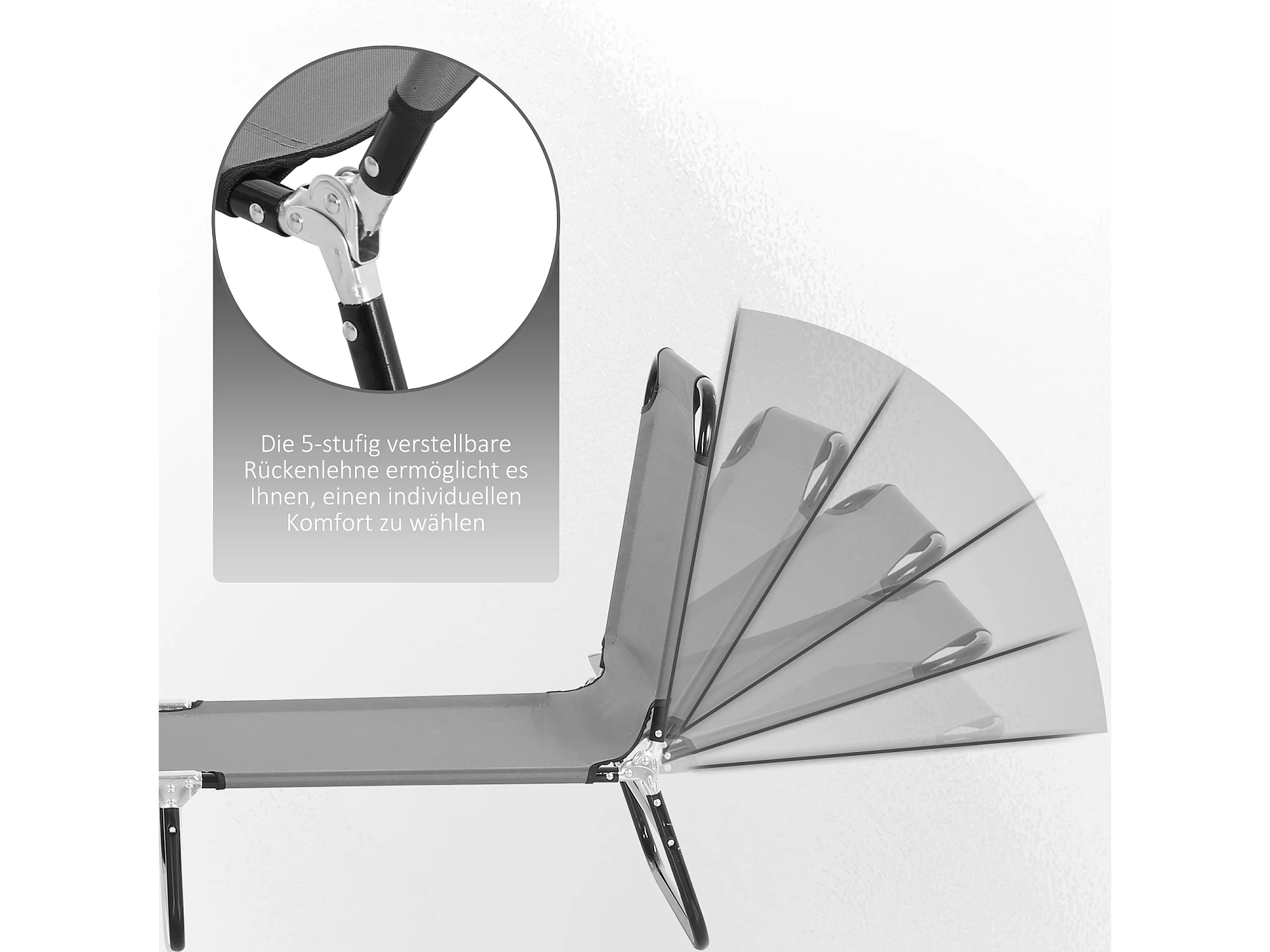 Set di 2 sedie a sdraio pieghevoli, schienale regolabile, acciaio e tessuto Oxford, grigio (142x51x40cm)