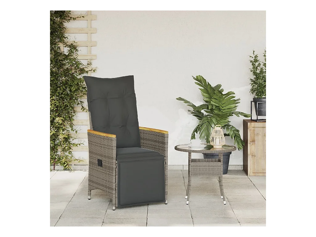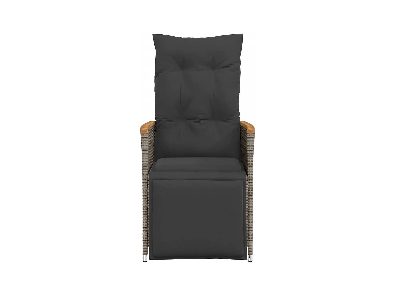 Sedia da giardino reclinabile con cuscini in vimini grigio