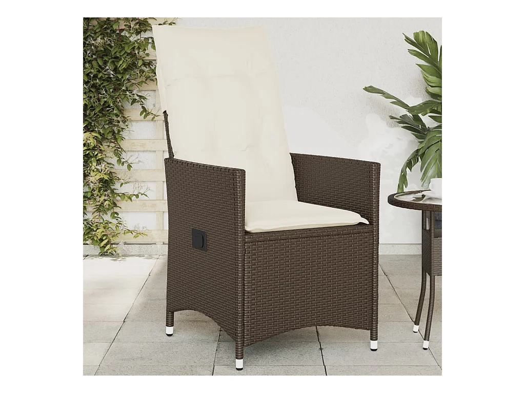Sedia da giardino reclinabile con cuscini in vimini di resina marrone