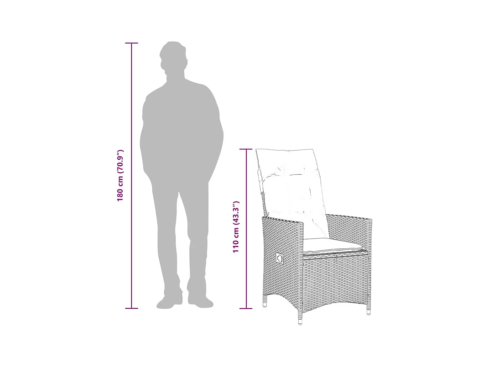 Set di 2 sedie da giardino reclinabili e tavolo in resina di vimini