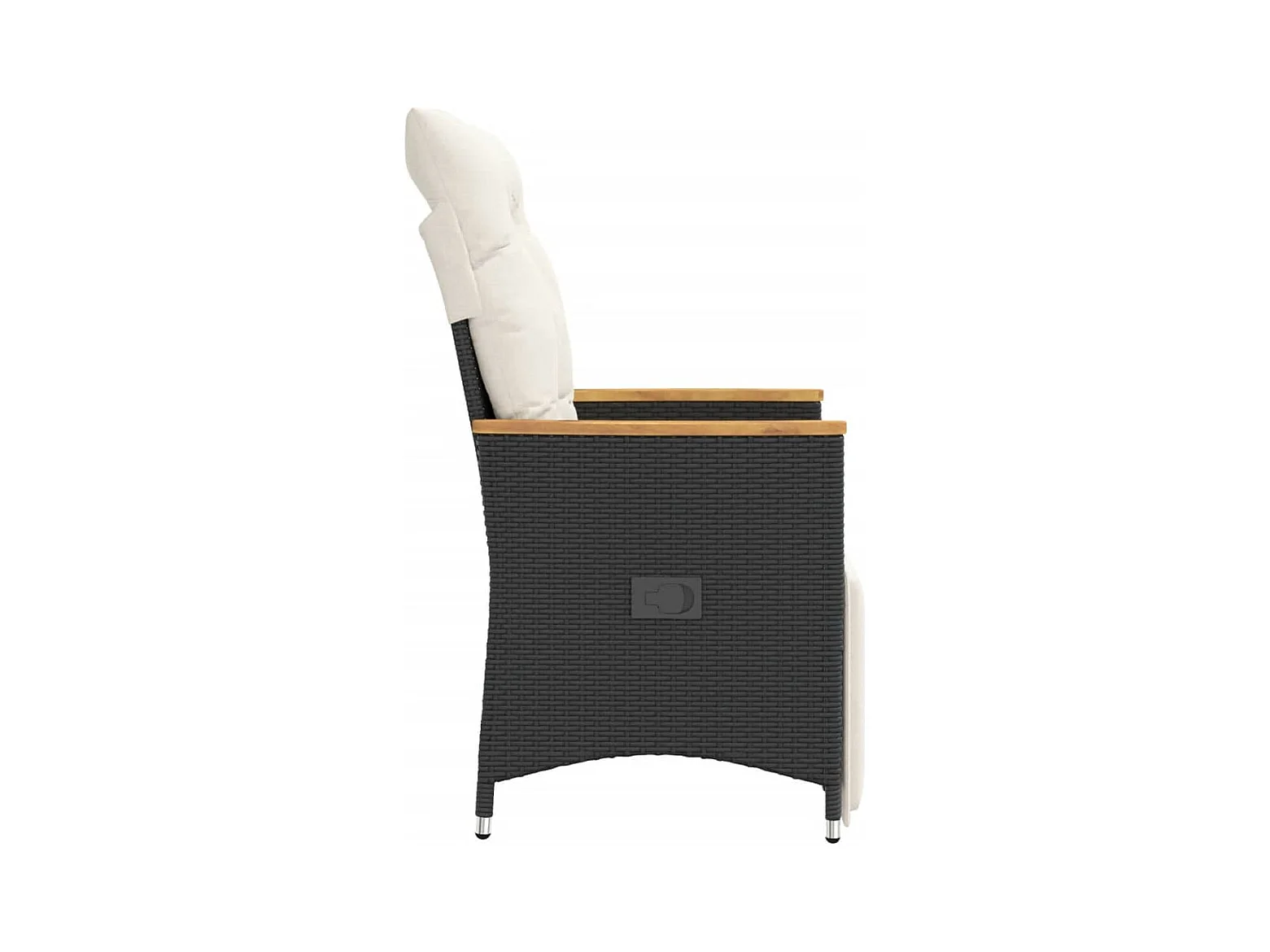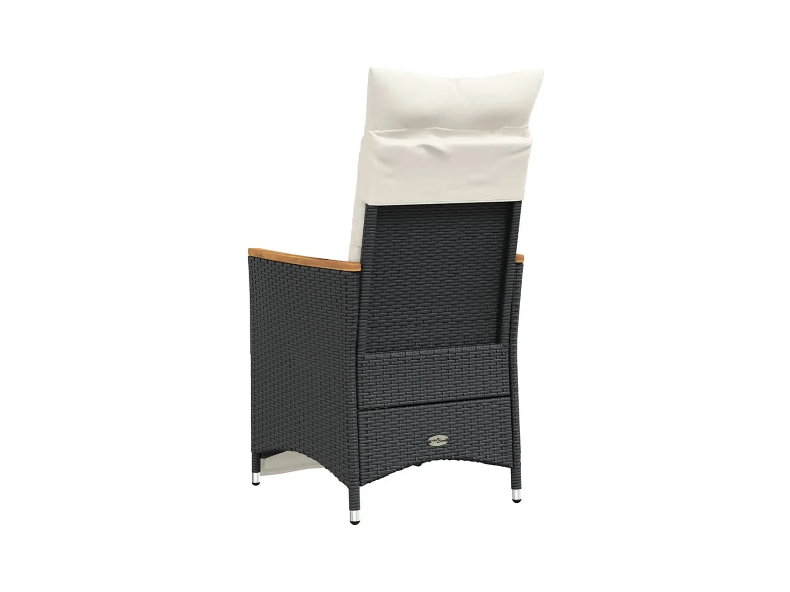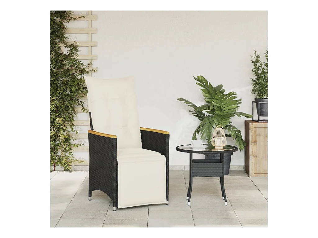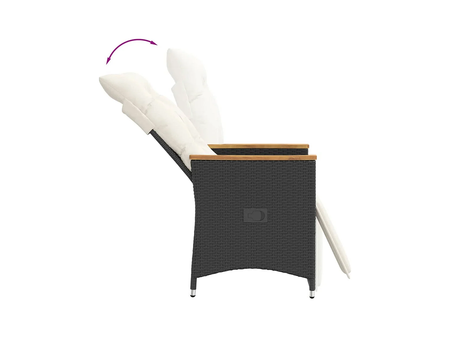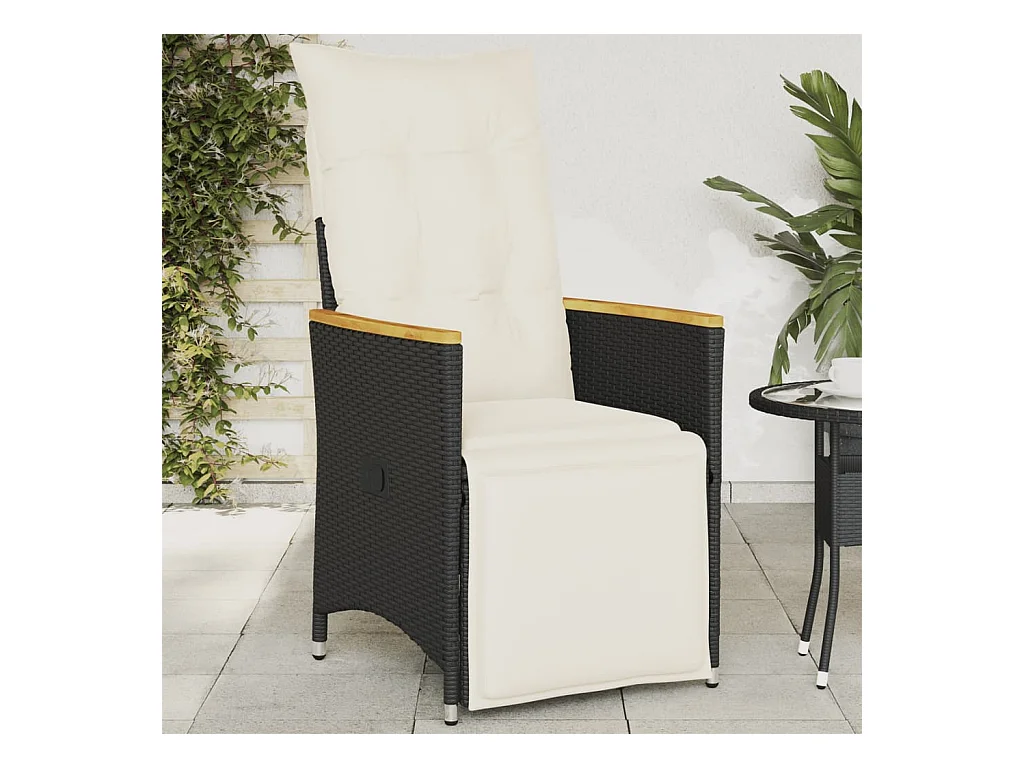 Sedia da giardino reclinabile con cuscini in vimini di resina nera