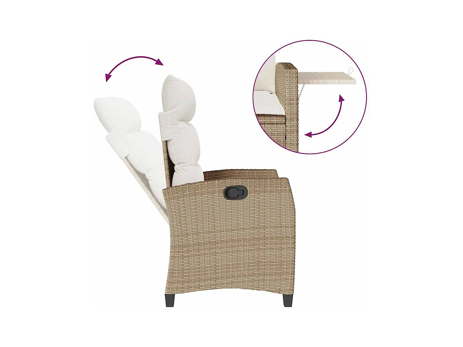 Sedia da giardino reclinabile e tavolino in polyrattan beige