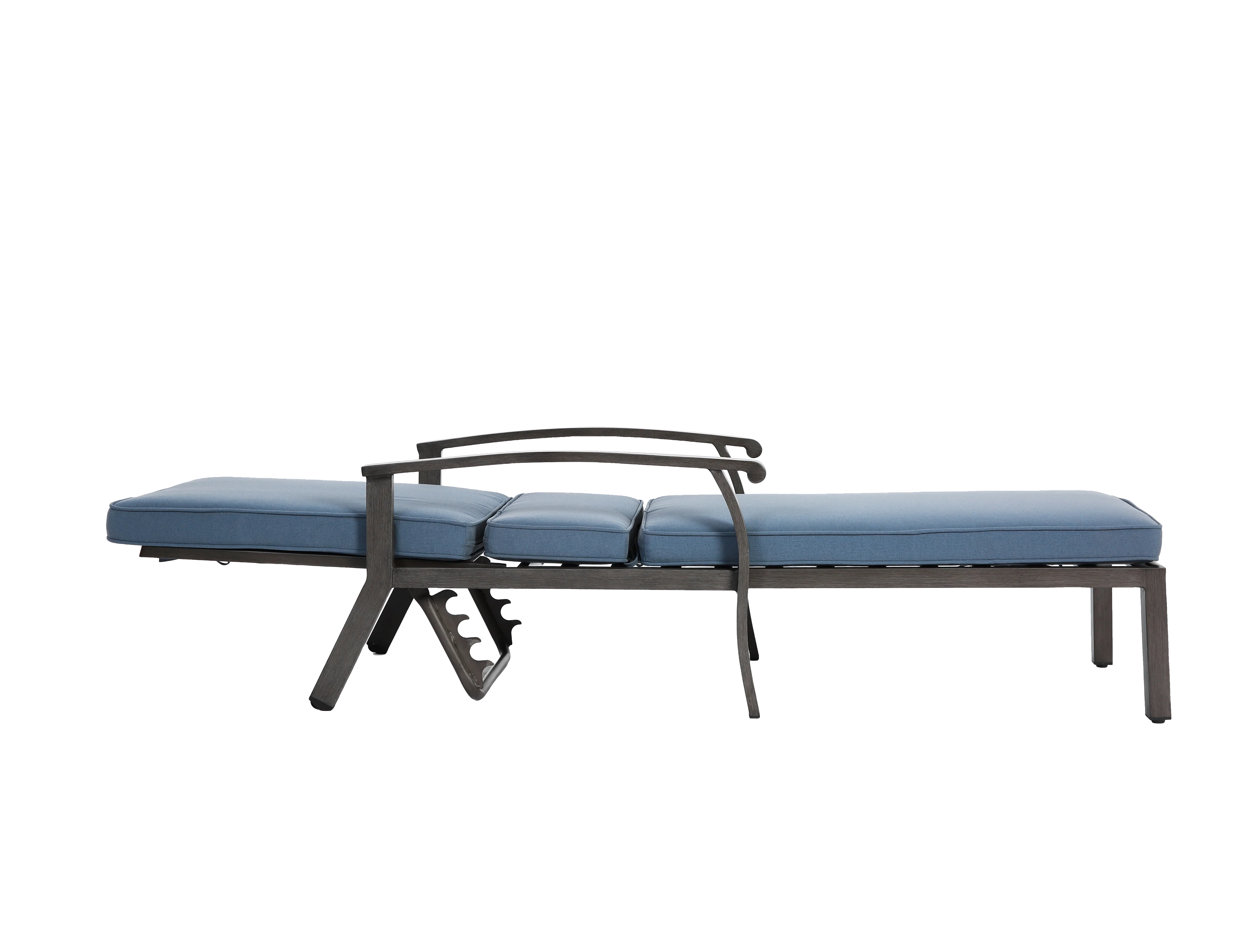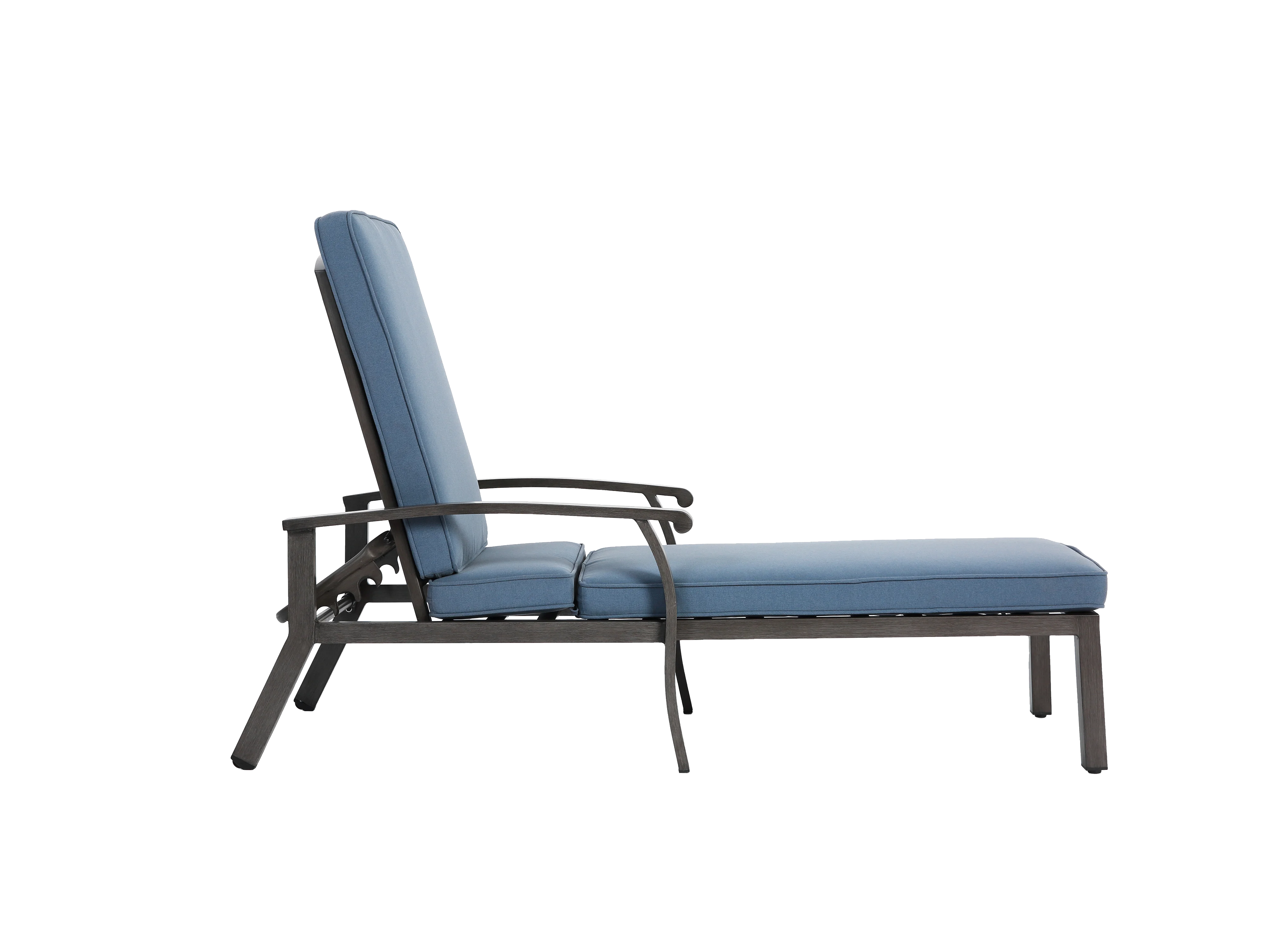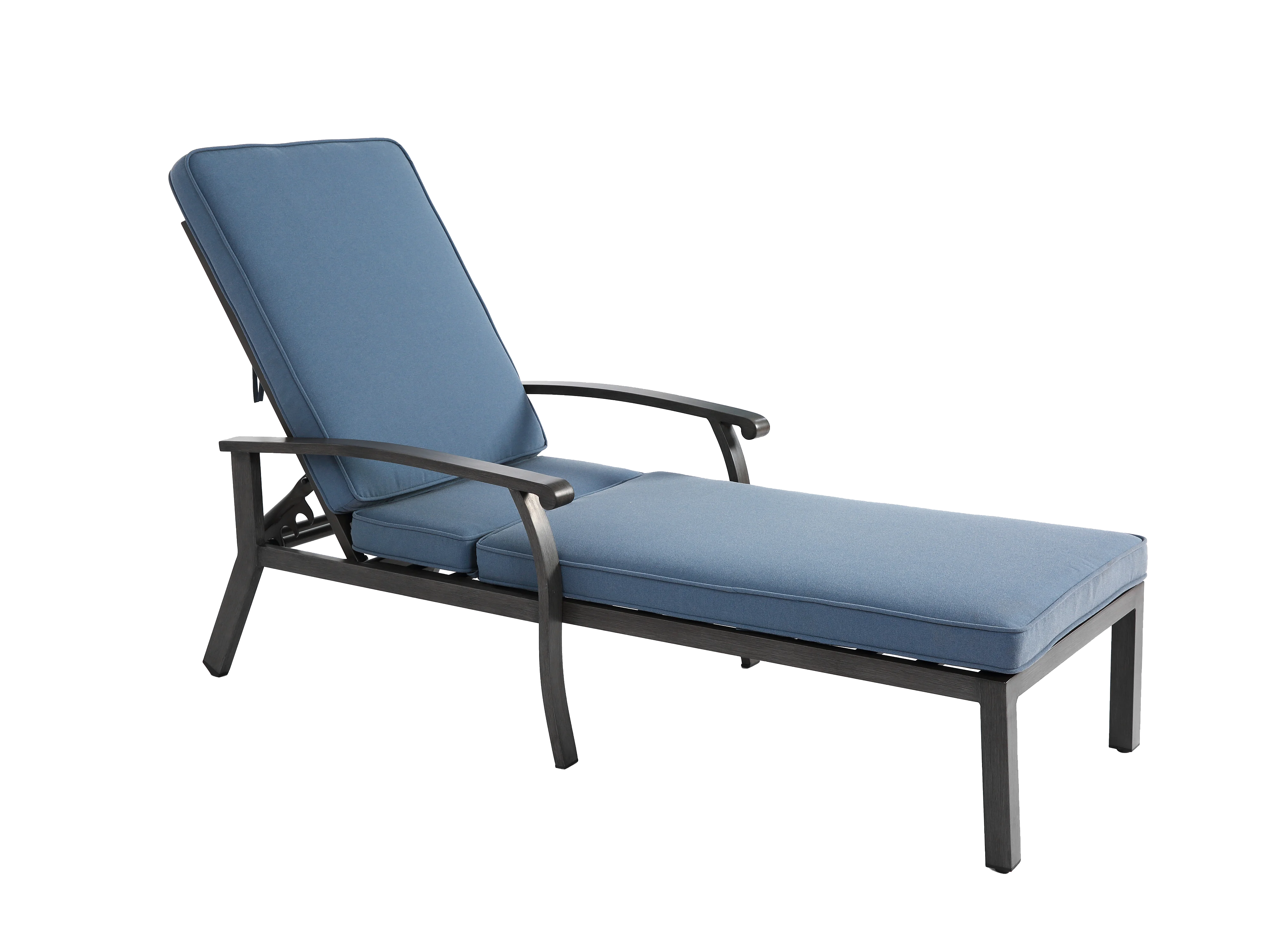 Sedia da giardino regolabile, resistente alla ruggine, in alluminio con cuscino in cotone impermeabile, blu (204x58x100/30 cm)