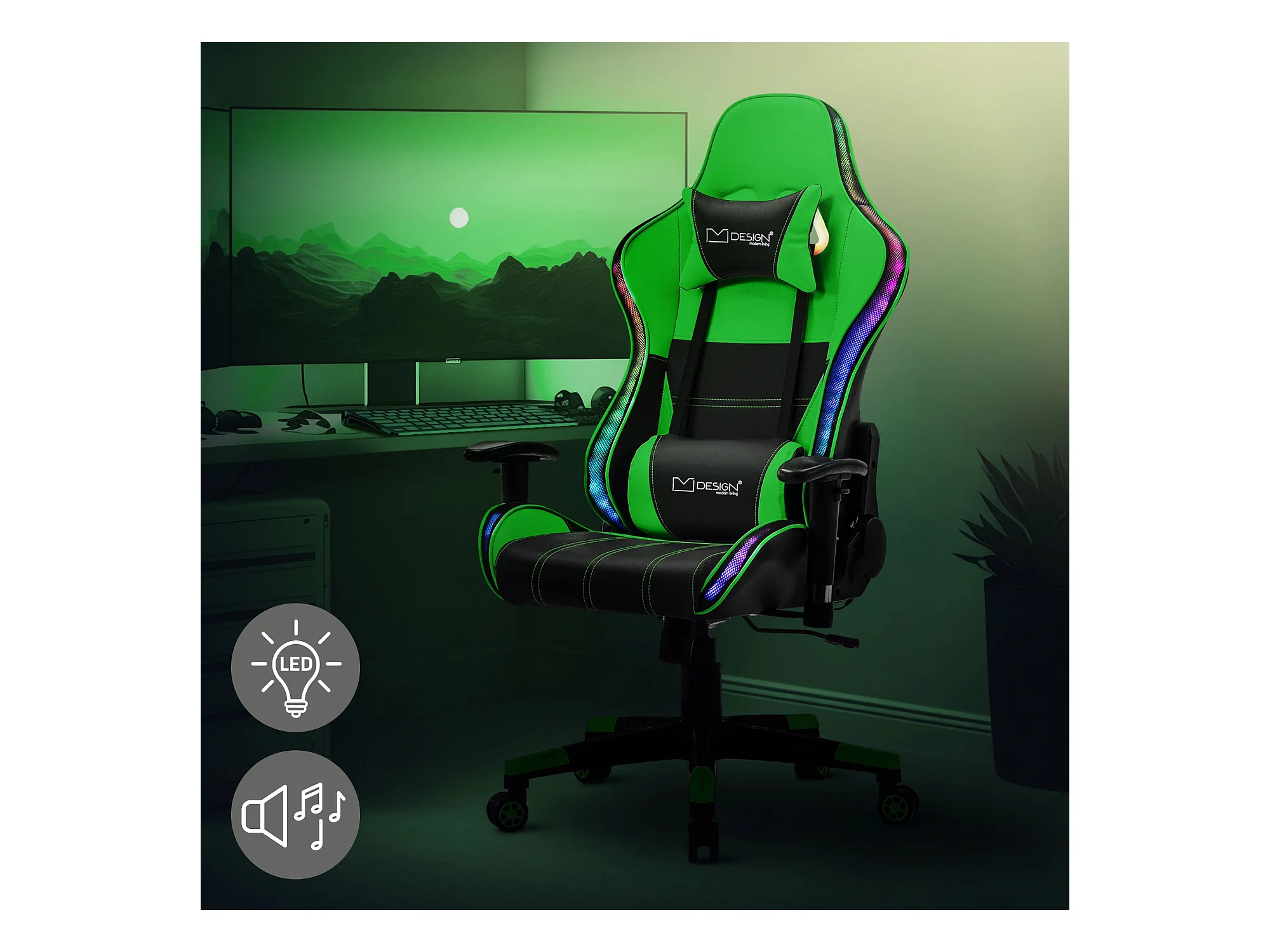 Sedia Gaming Con LED RGB Telecomando Poltrona Ufficio Scrivania Casa PC Racing Girevole Ergonomica Ecopelle Cuscino Lombare Poggiapiedi Nero Verde