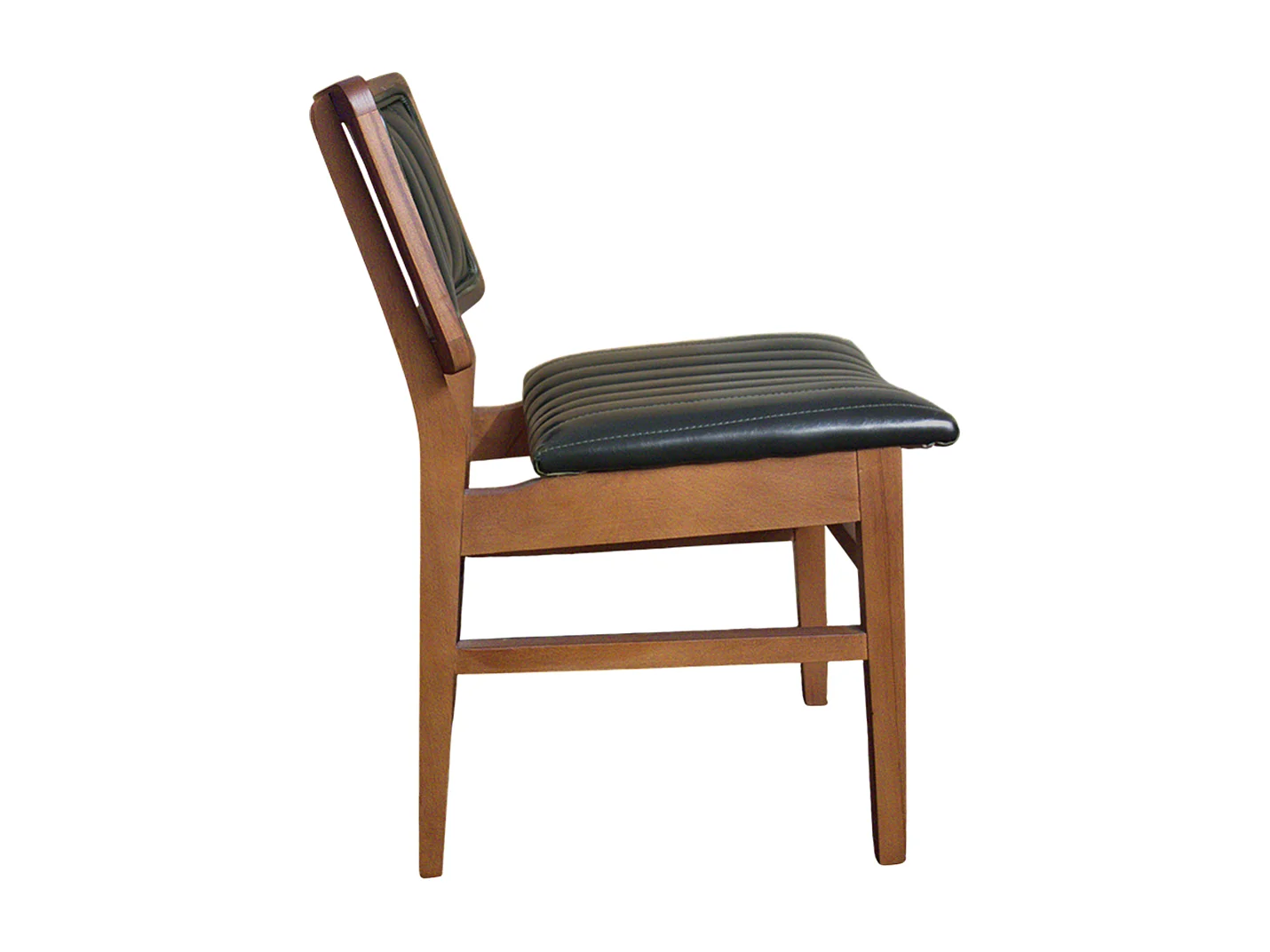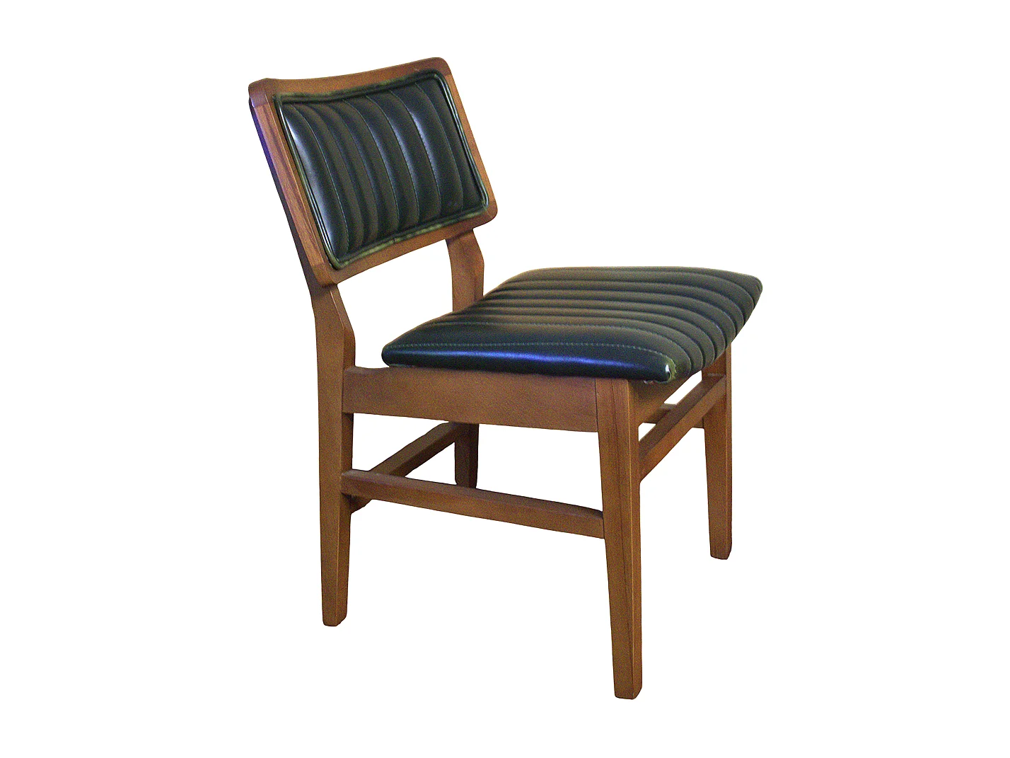 Sedia da interno artigianale in ecopelle nera con struttura in legno massello di faggio