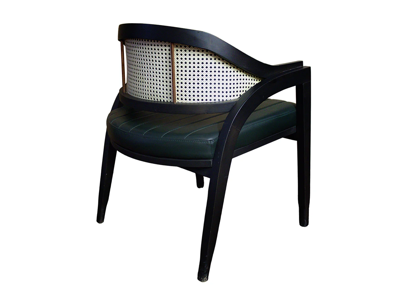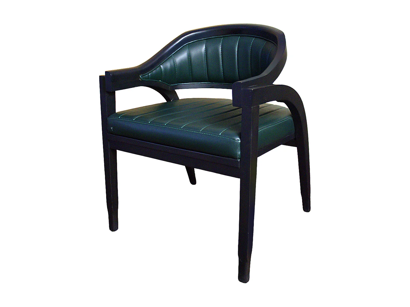 Sedia da interno artigianale in ecopelle verde con struttura in legno massello di faggio