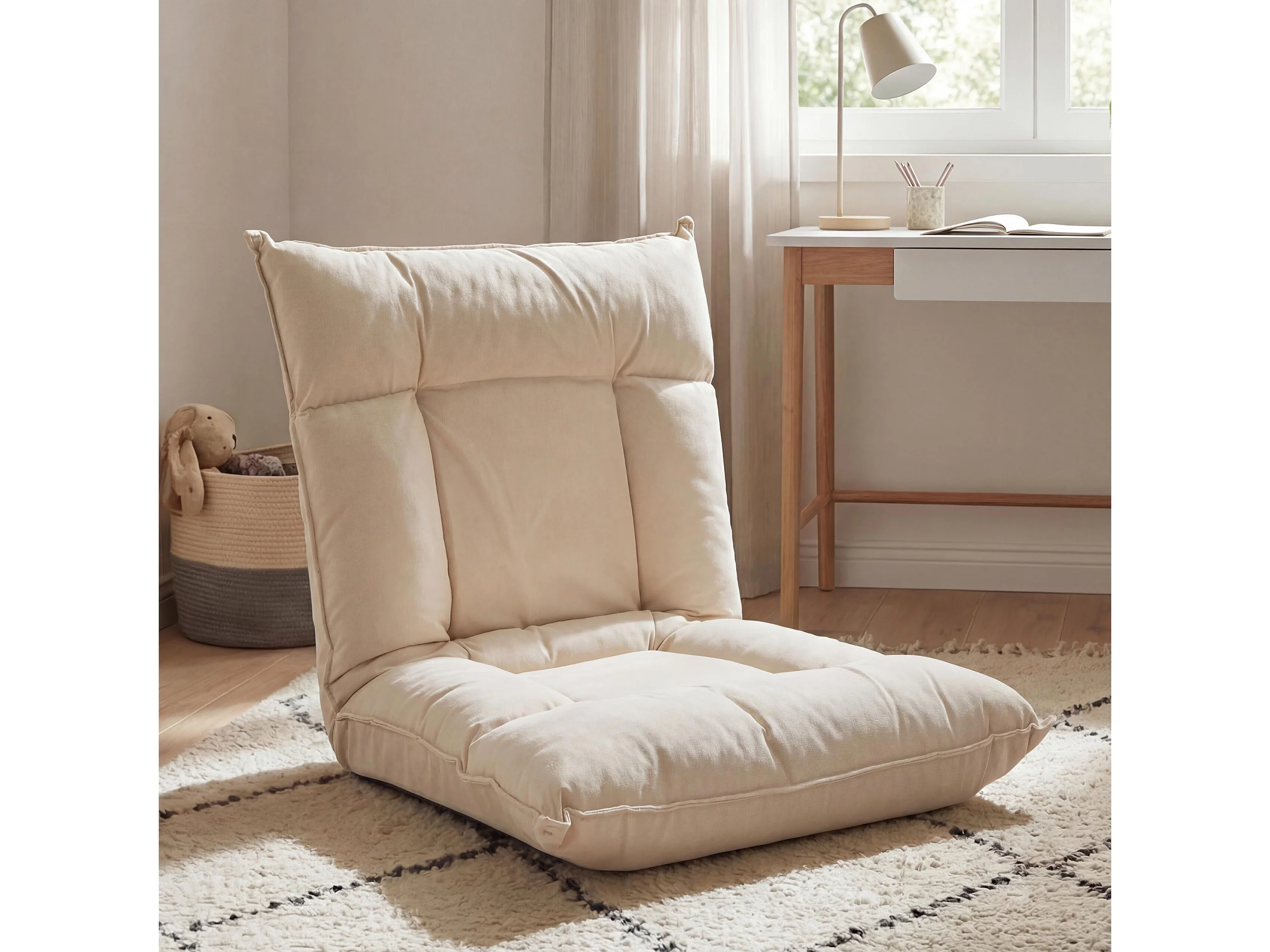 Sedia da pavimento MCW-N44, poltrona da pavimento cuscino 6 posizioni reclinabili, velluto ~ beige