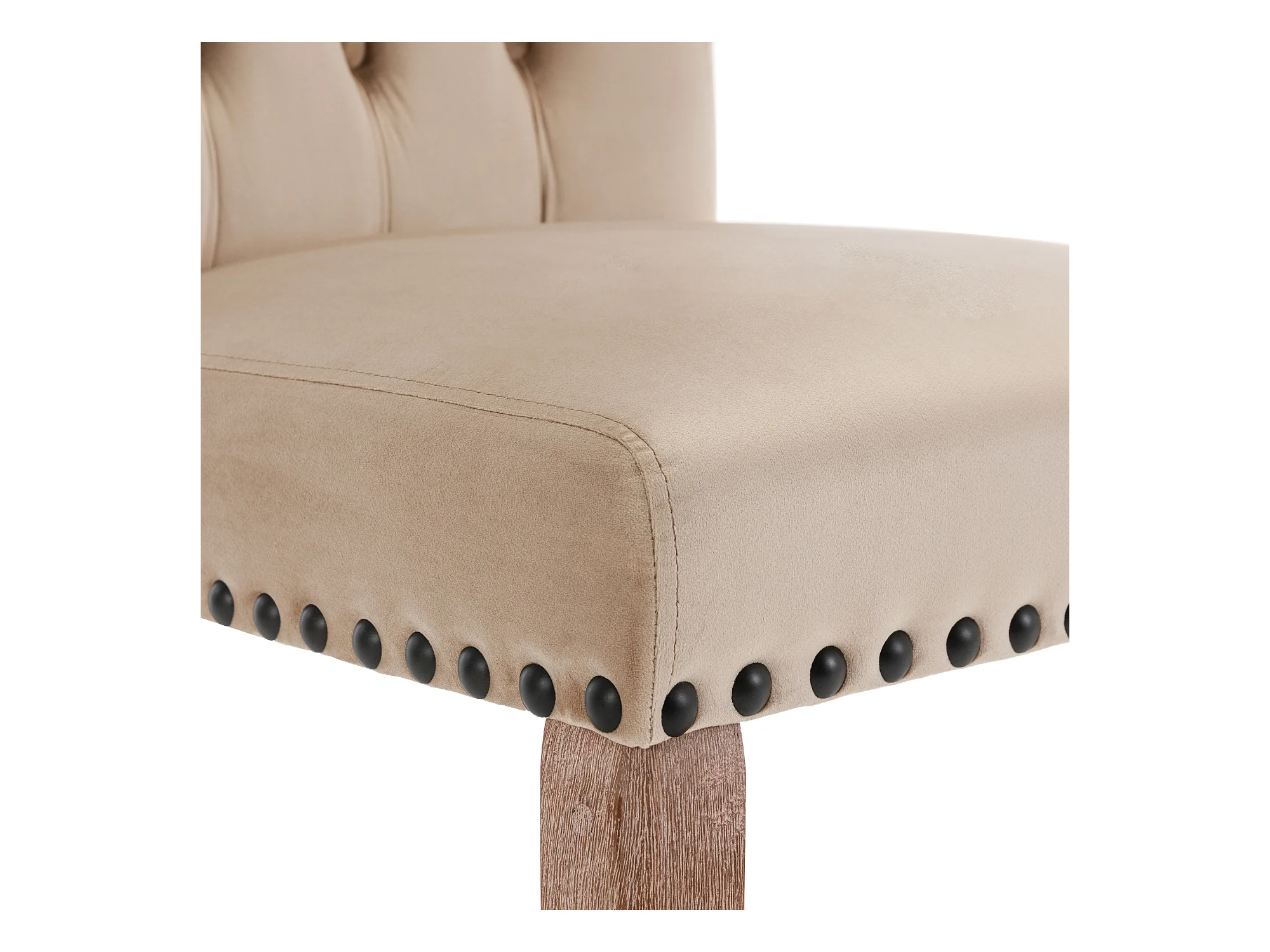 Sedia da pranzo con schienale decorato, in velluto cammello, gambe in legno massello, con chiodini decorativi, set da 2 (49x63x95 cm)