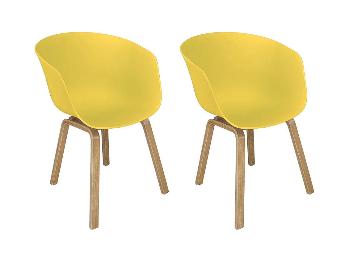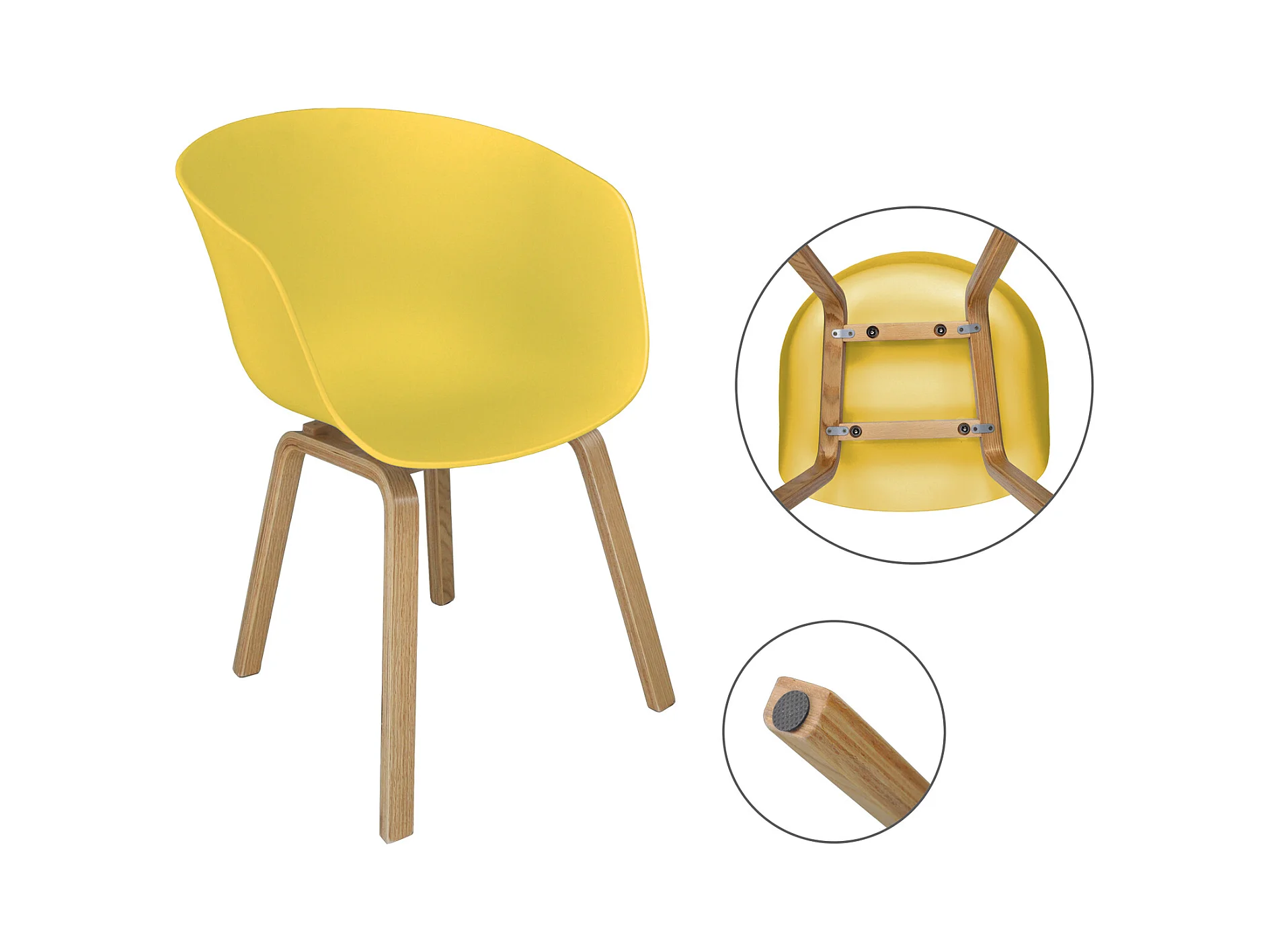 Sedia in plastica gialla con gamba, piede in legno (2 pz)