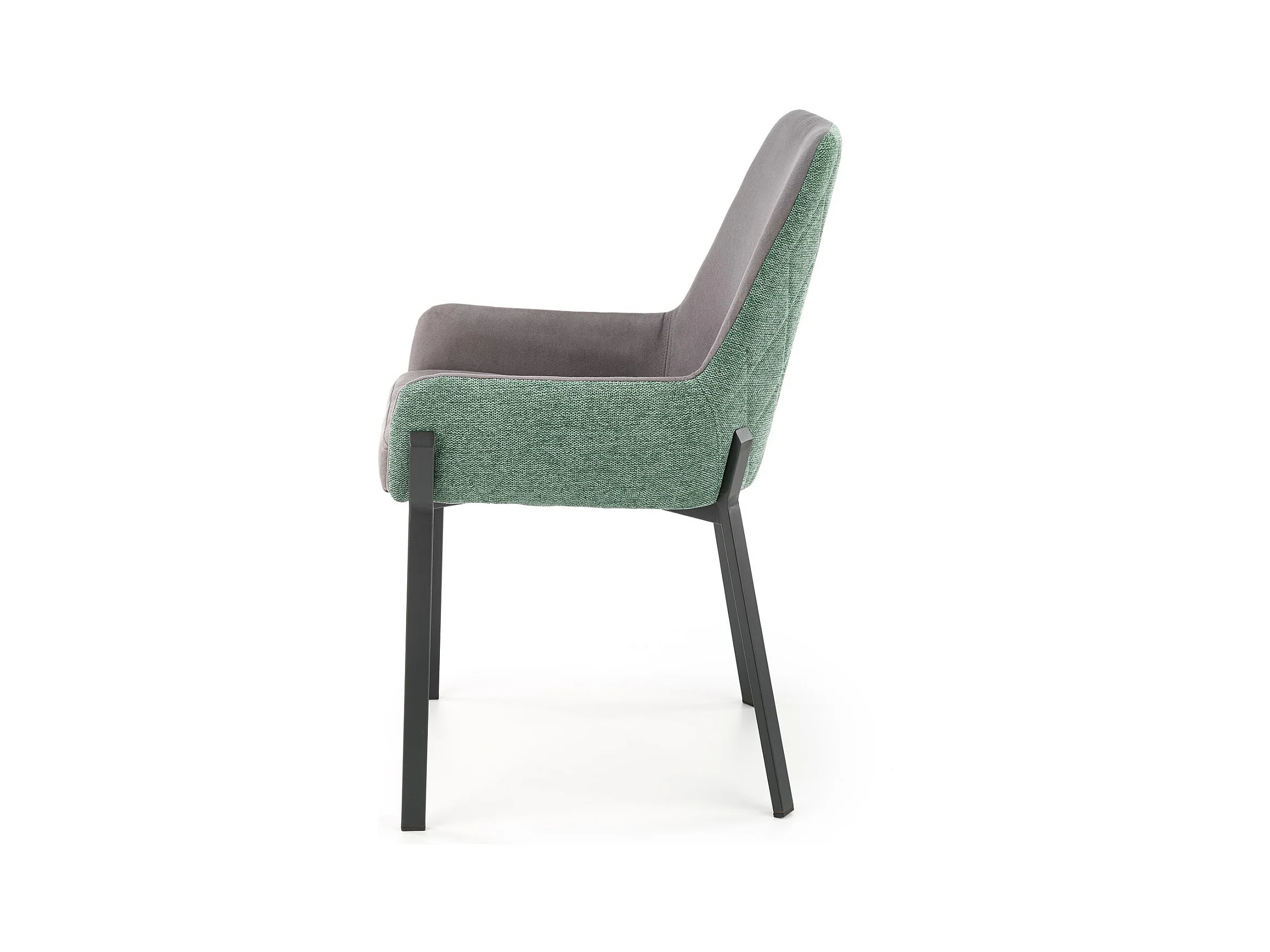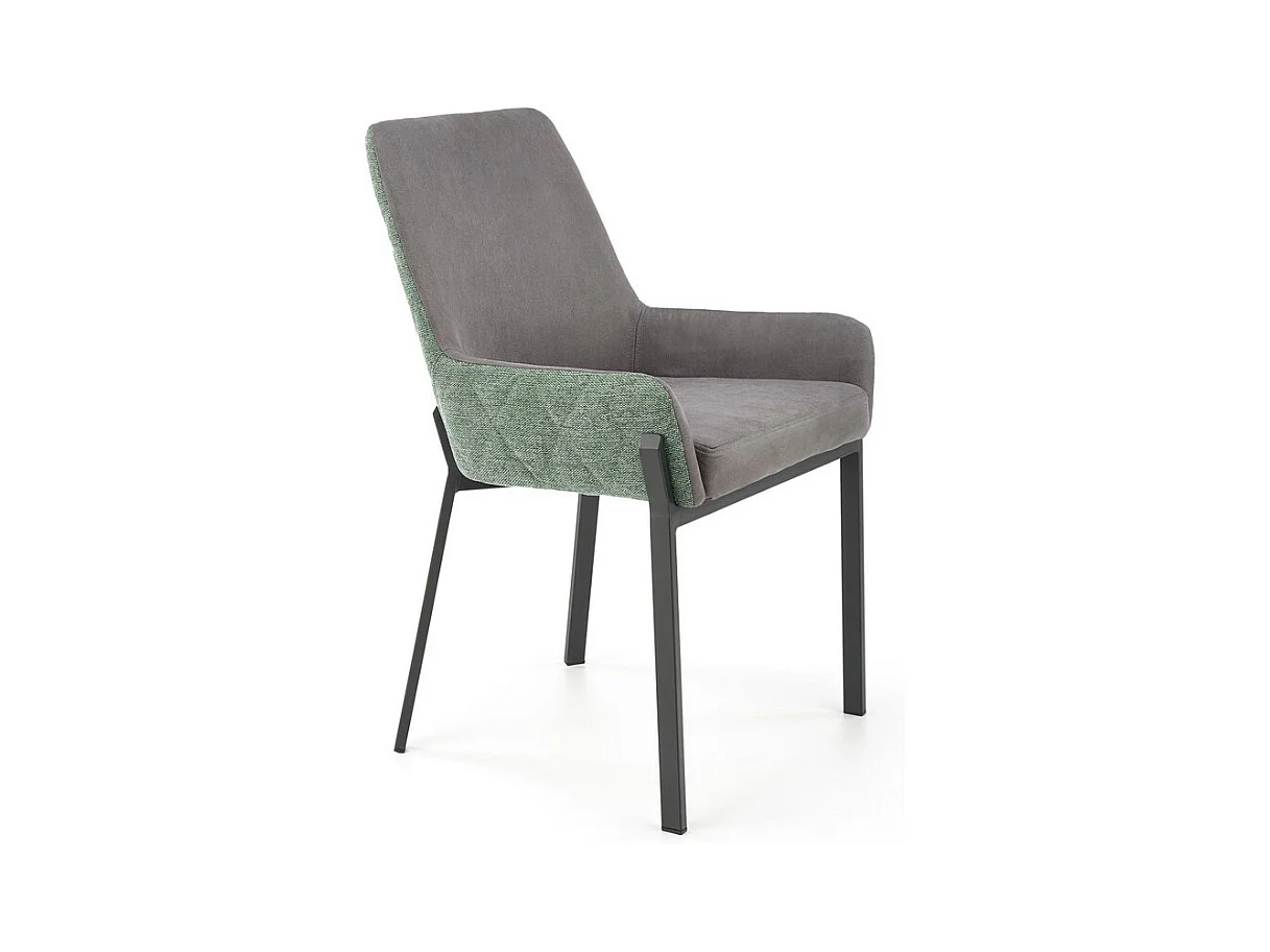 Sedia da pranzo grigia e verde con gambe in metallo nero OGMA