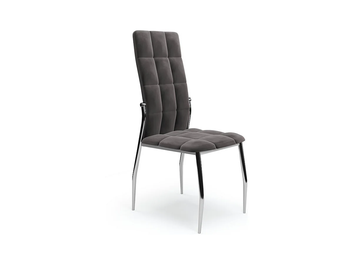Sedia da pranzo imbottita in velluto grigio con schienale alto e gambe in acciaio di design ELYSIUM