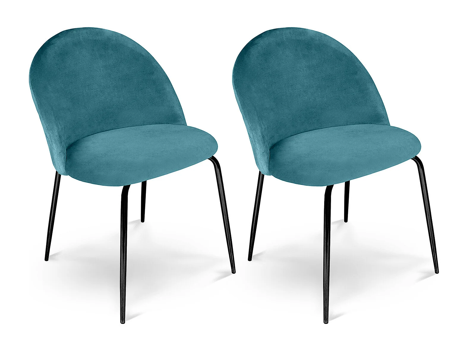 Sedia da pranzo imbottita in velluto verde petrolio piede metallo nero – Nicole (2 Pz)