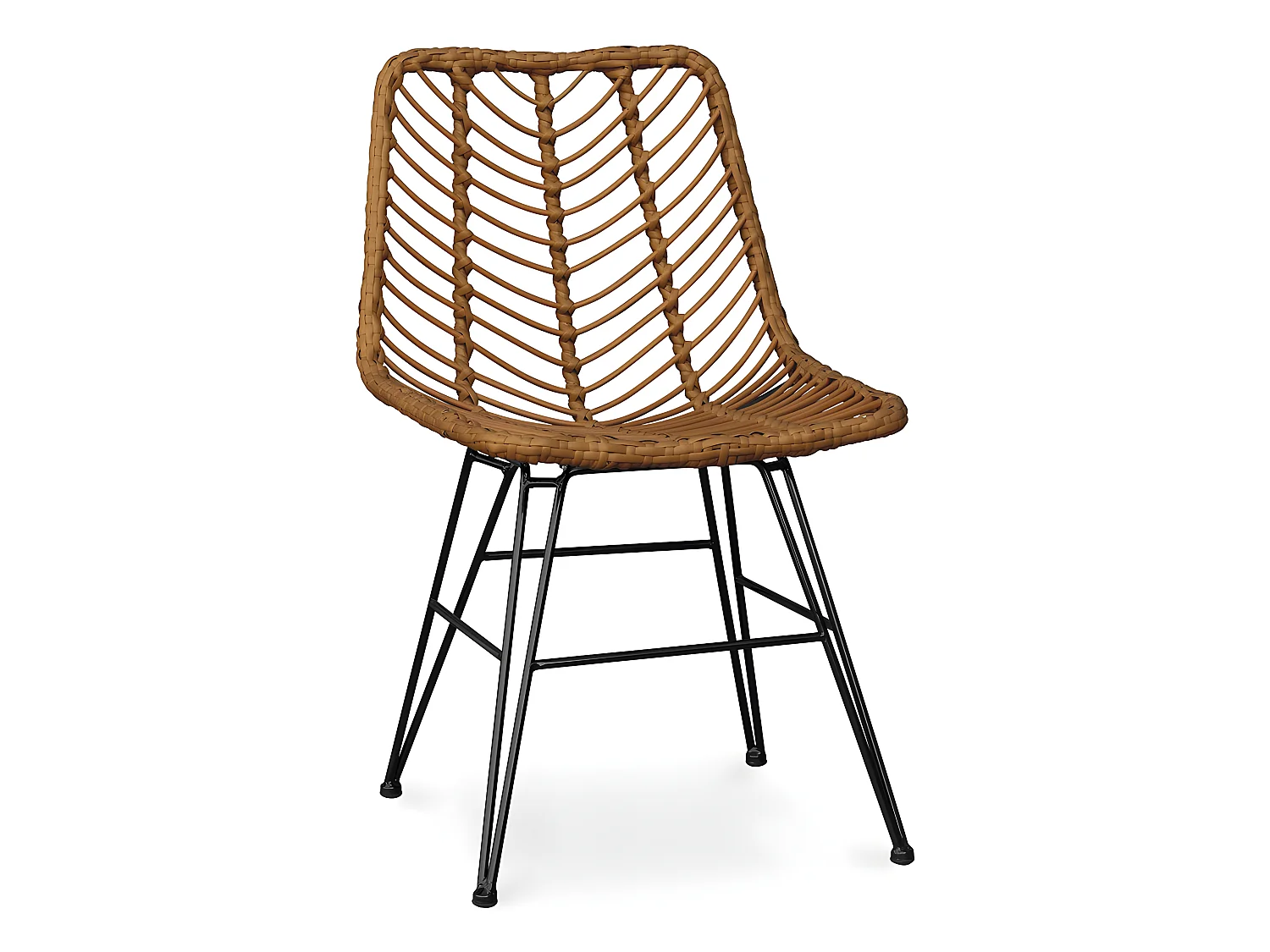 Poltrona in rattan naturale con gambe in acciaio nero Honey