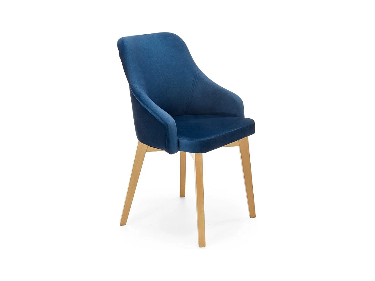 Sedia da pranzo in tessuto blu con gambe in legno massiccio KANDRA
