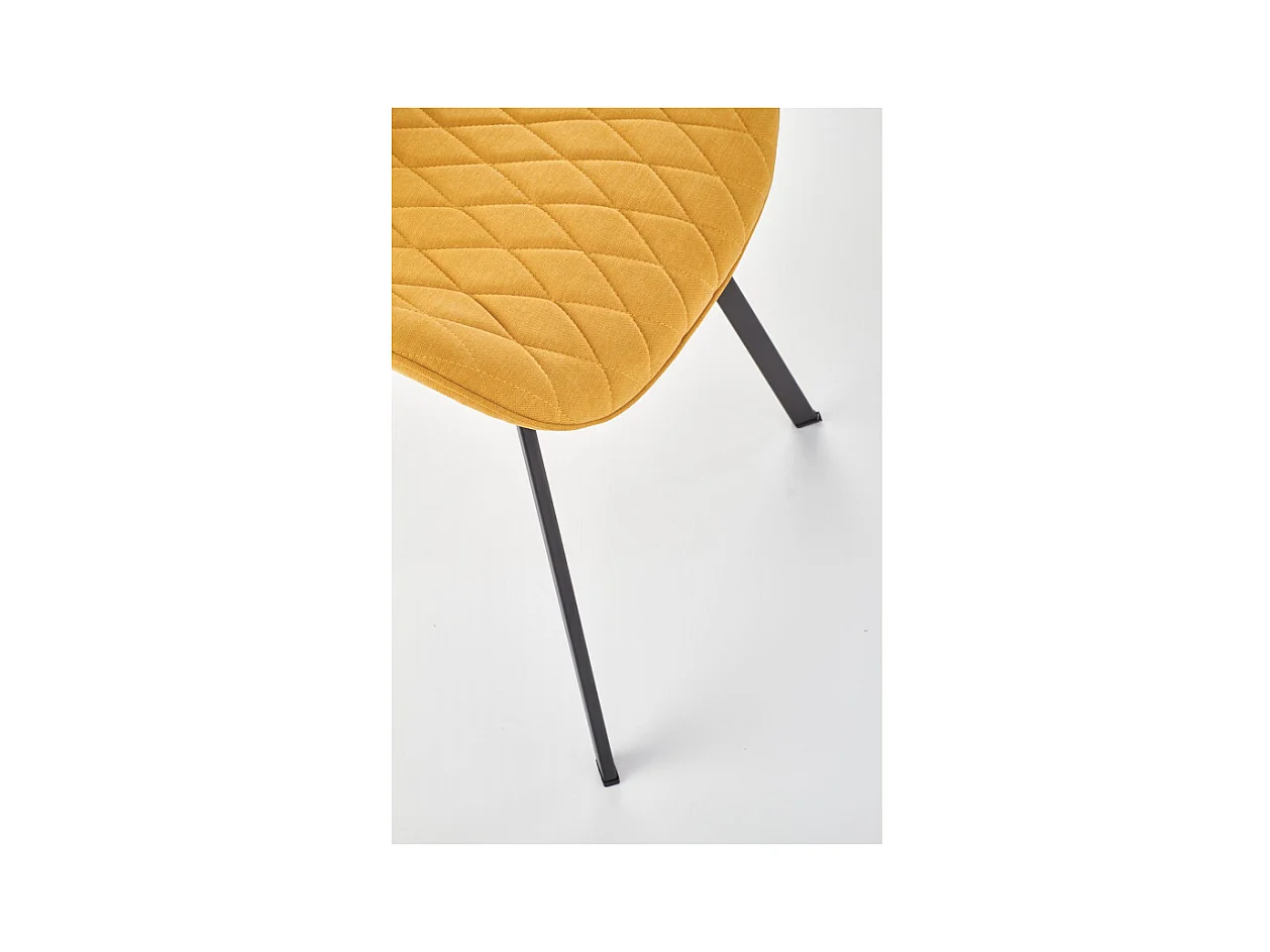 Set di 4 sedie in tessuto giallo senape con gambe in metallo effetto legno – 45x87x54 cm – Collezione NORDICA