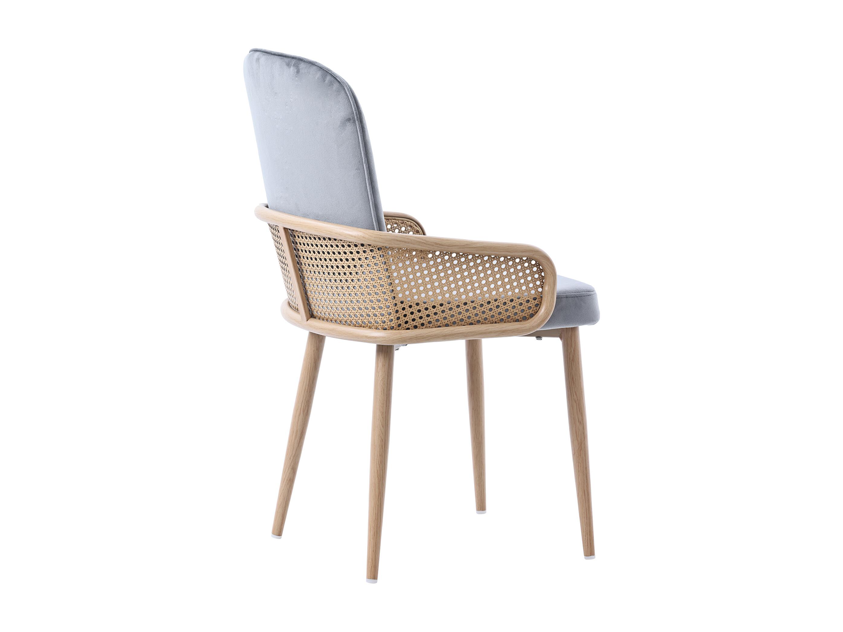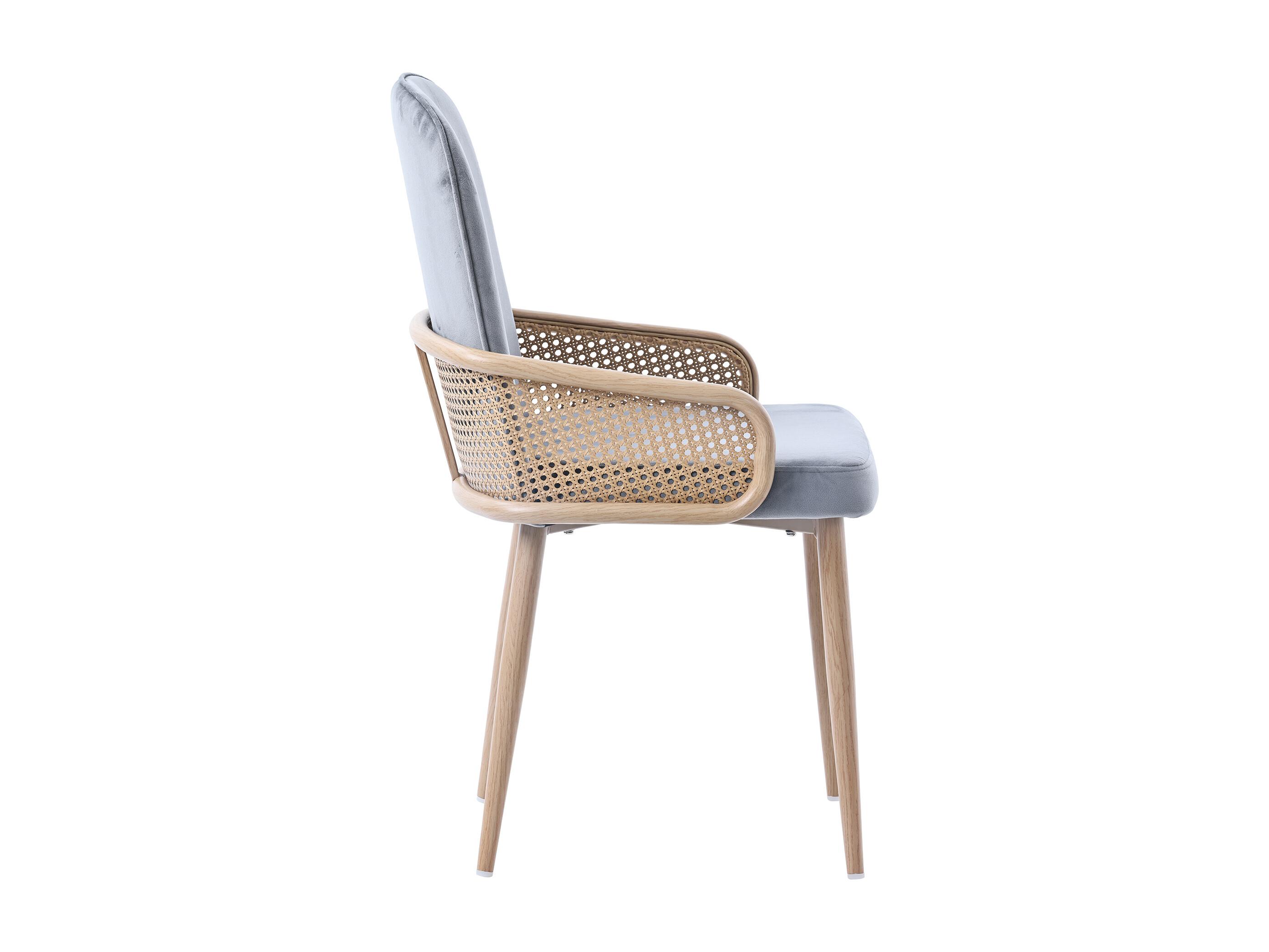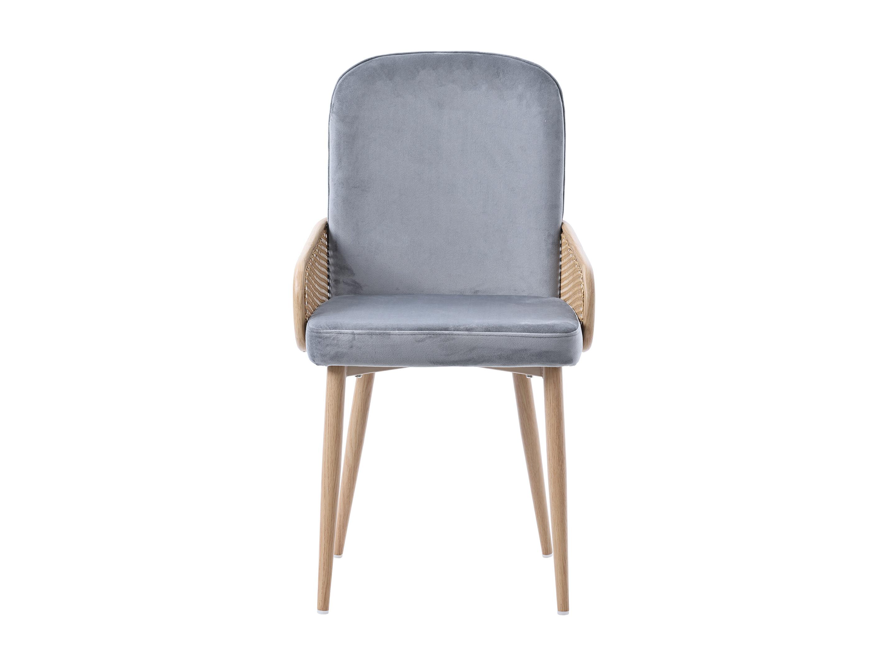 Sedia da pranzo in velluto, 2 pezzi, design in rattan, gambe in metallo effetto legno, grigio (61x59,5x52 cm)