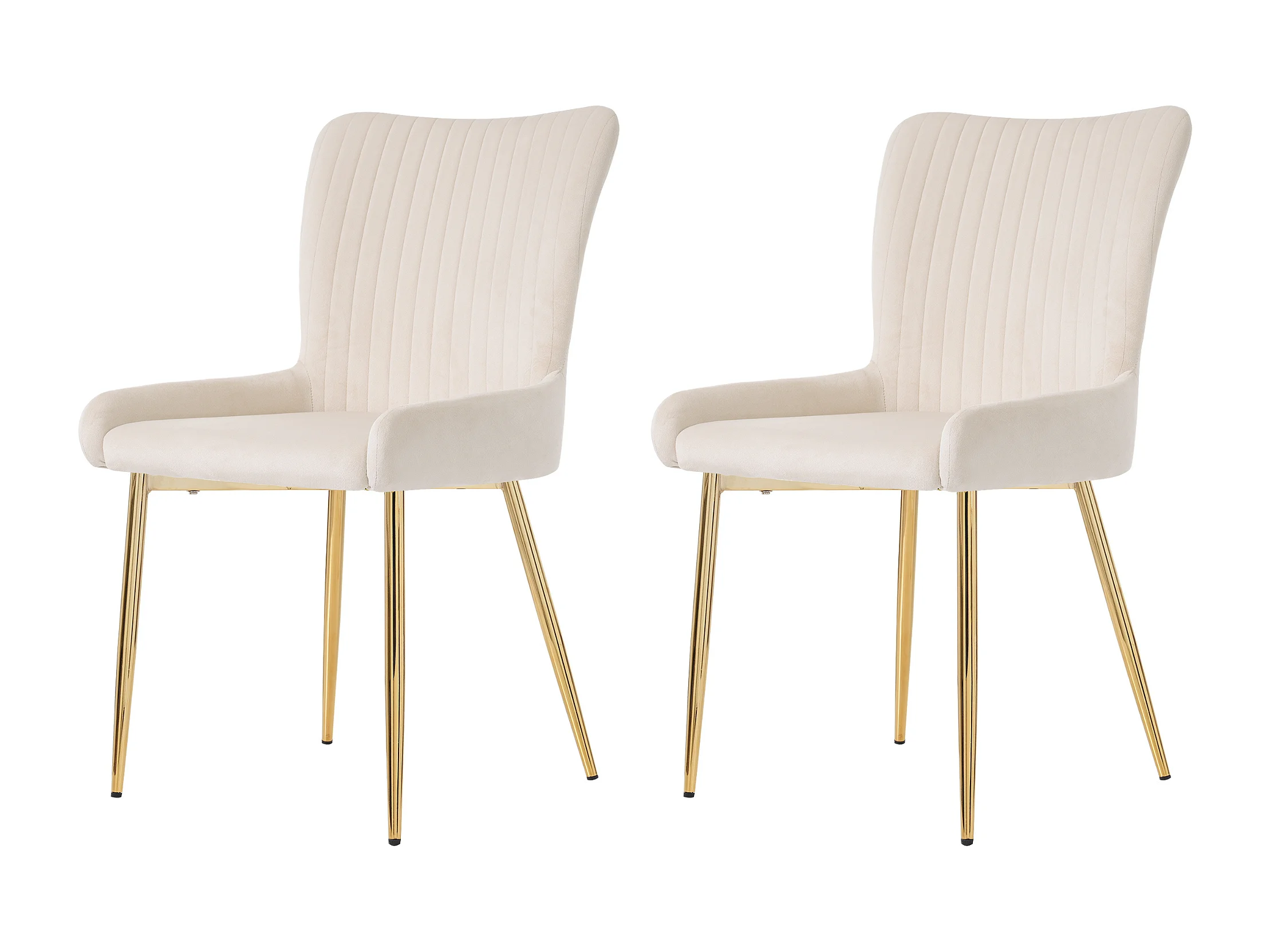 Sedia da pranzo in velluto beige a 2 pezzi con gambe in metallo dorato e supporto lombare (74x58x48 cm)