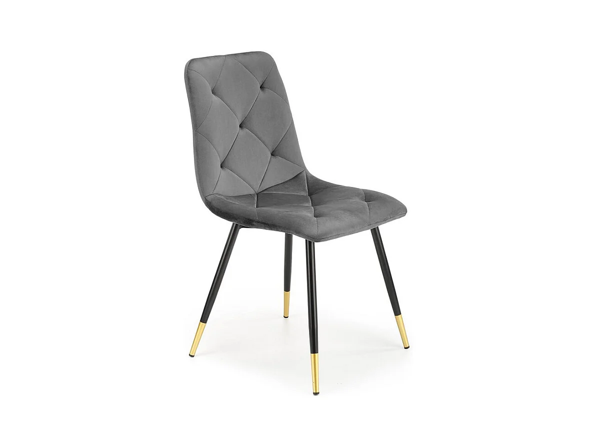 Sedia da pranzo in velluto grigio con gambe in metallo nero e oro BOCHICA
