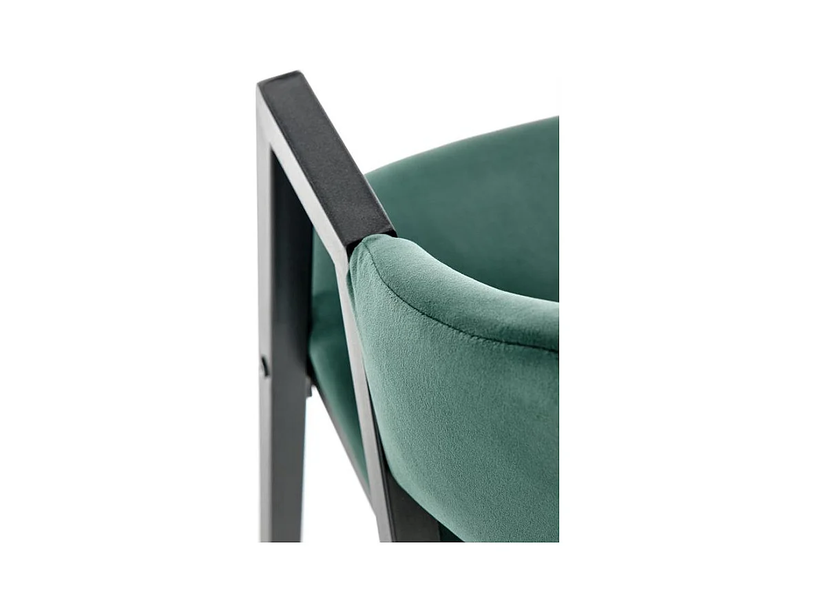 Sedia contemporanea in velluto verde con braccioli e gambe in metallo nero DOVE