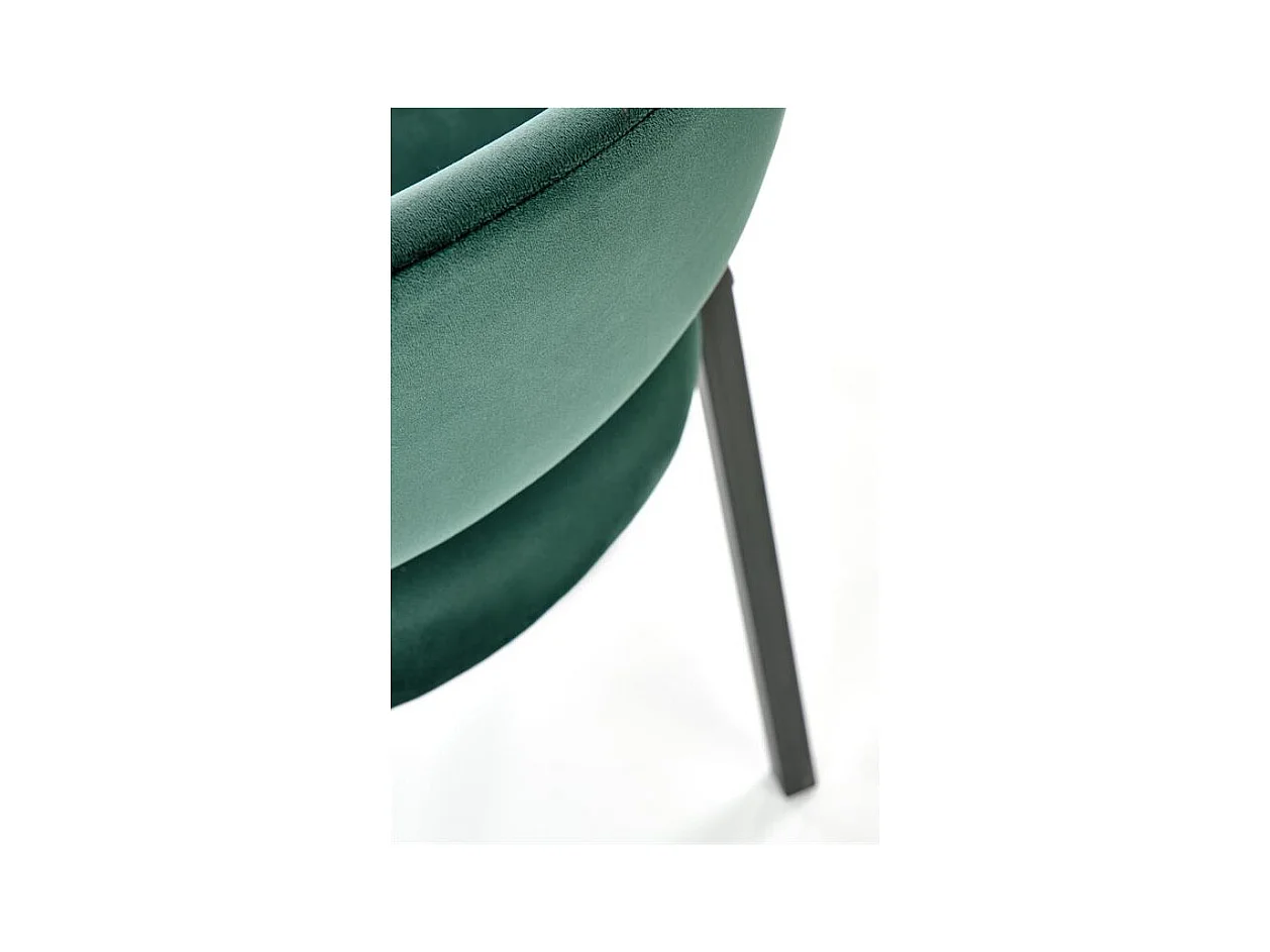 Sedia in velluto verde con schienale arrotondato e gambe in metallo nero ERIKA