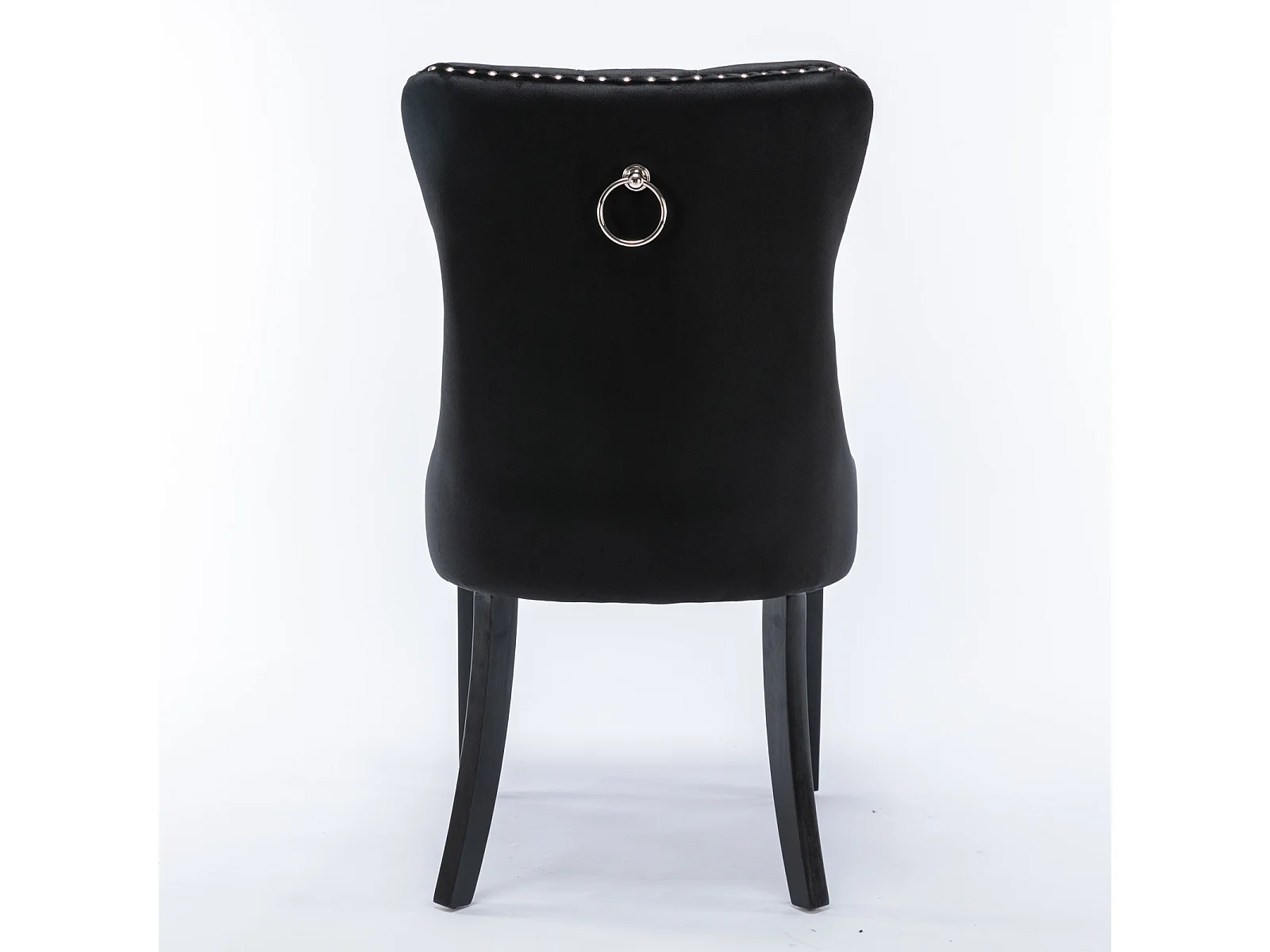 Sedia da pranzo moderna in velluto di alta qualità, schienale imbottito con gambe in legno e finiture con borchie, nera (65x50x95 cm)