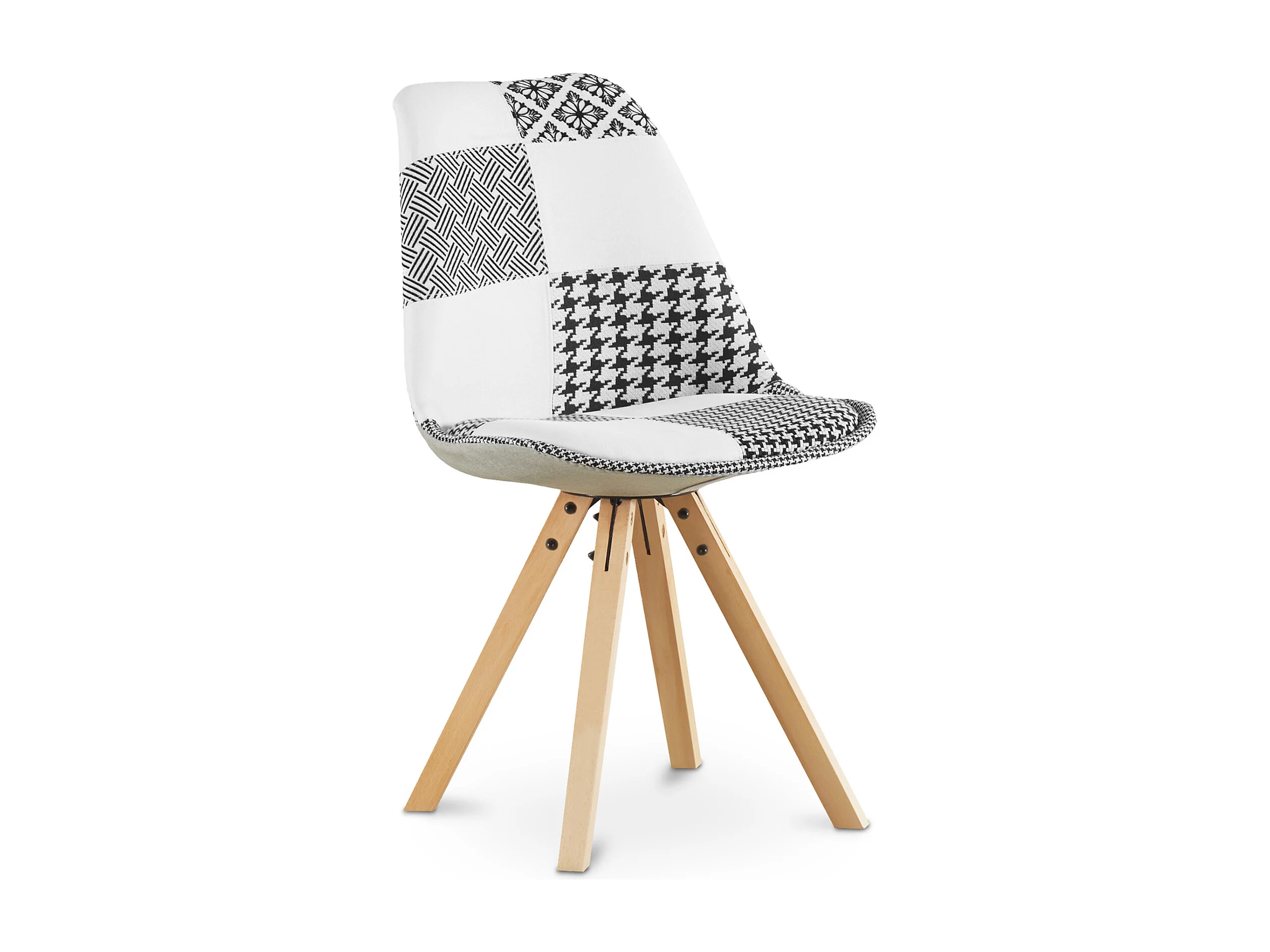 Sedia da pranzo - Rivestita in patchwork bianco e nero - Denisse