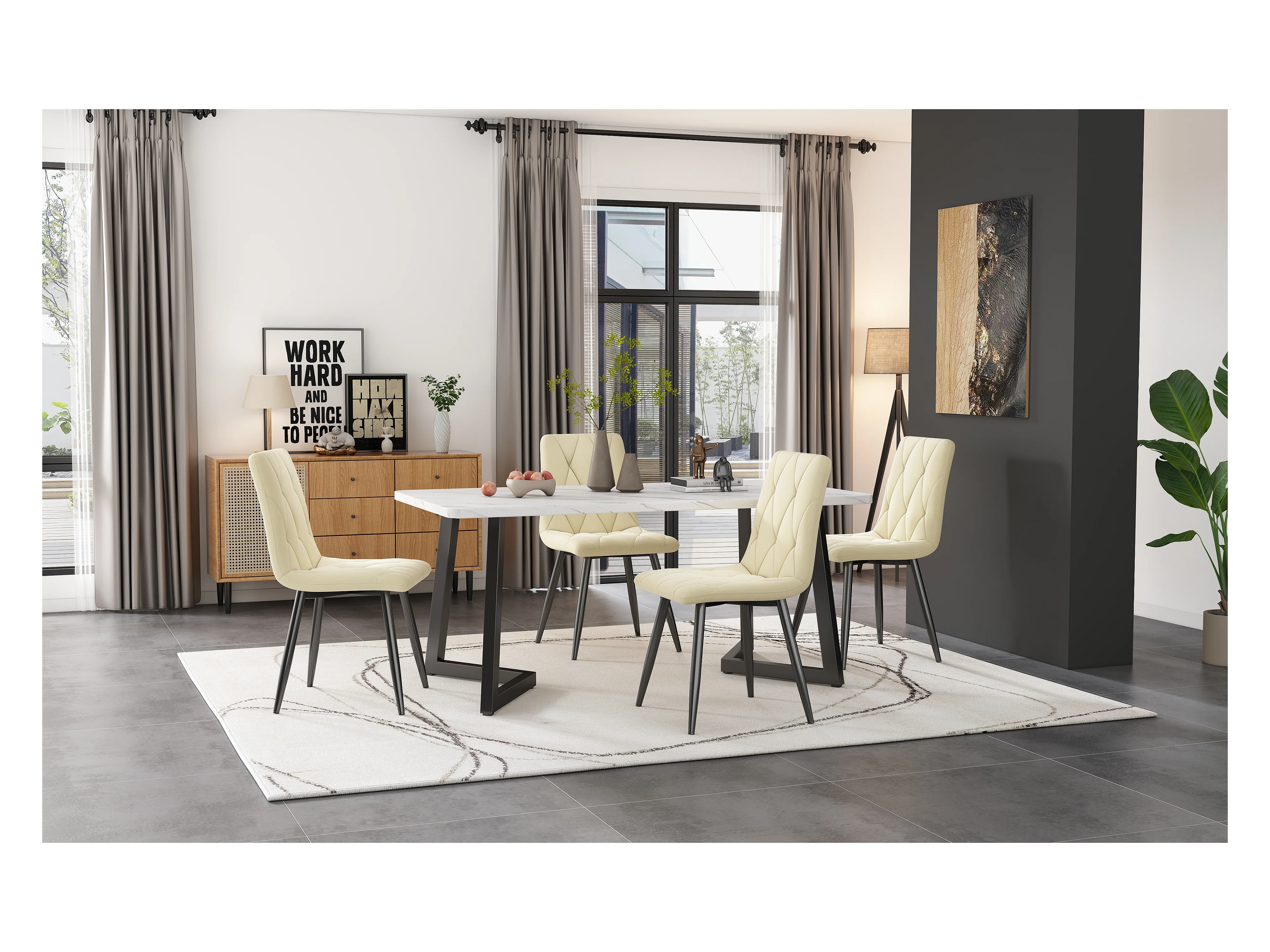 Sedia da pranzo in velluto a 4 pezzi con gambe in metallo, beige