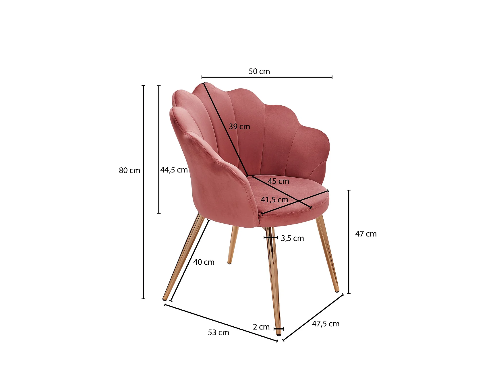 Sedia a guscio di design in velluto rosa con gambe in acciaio Amboise nero