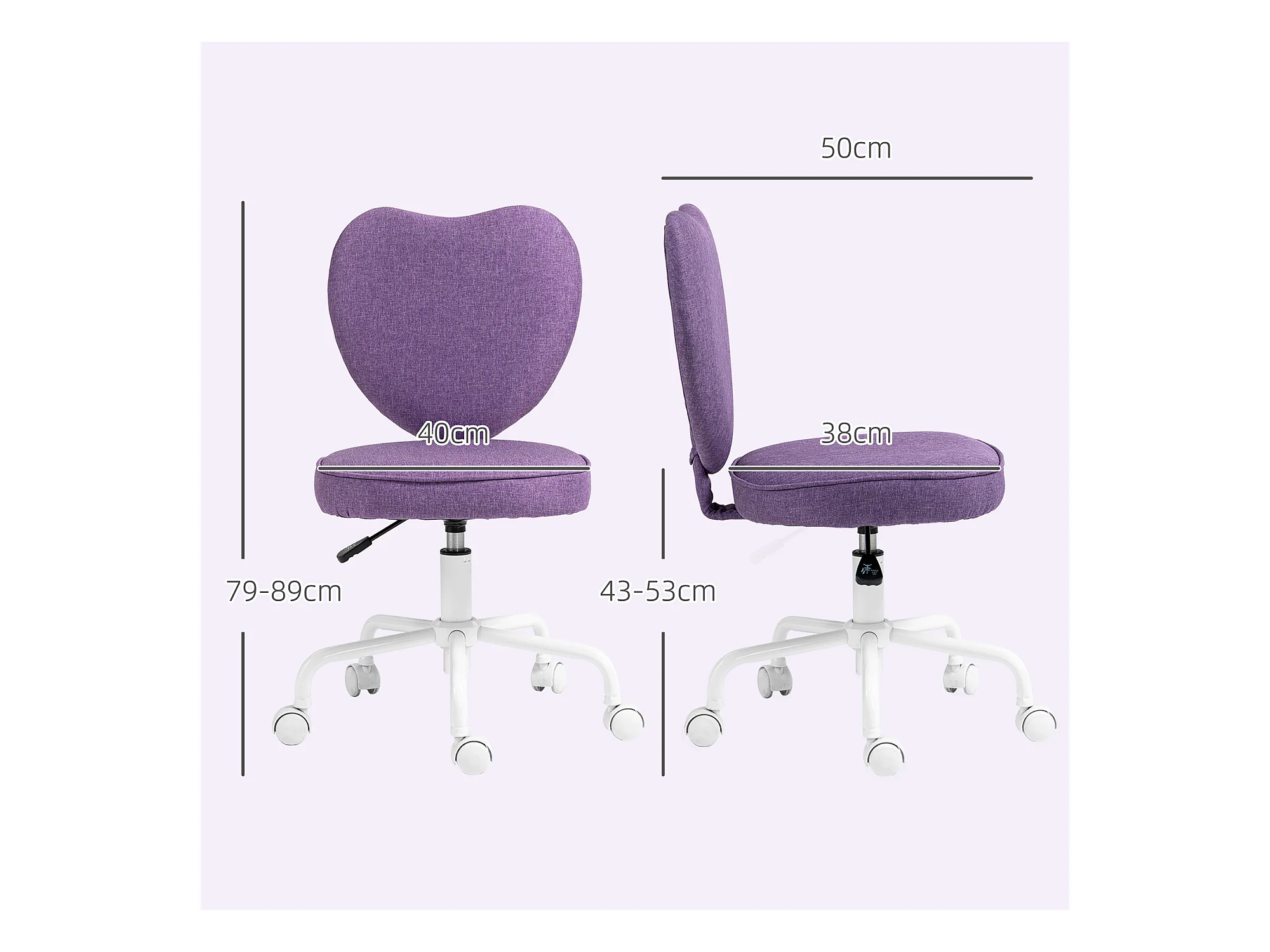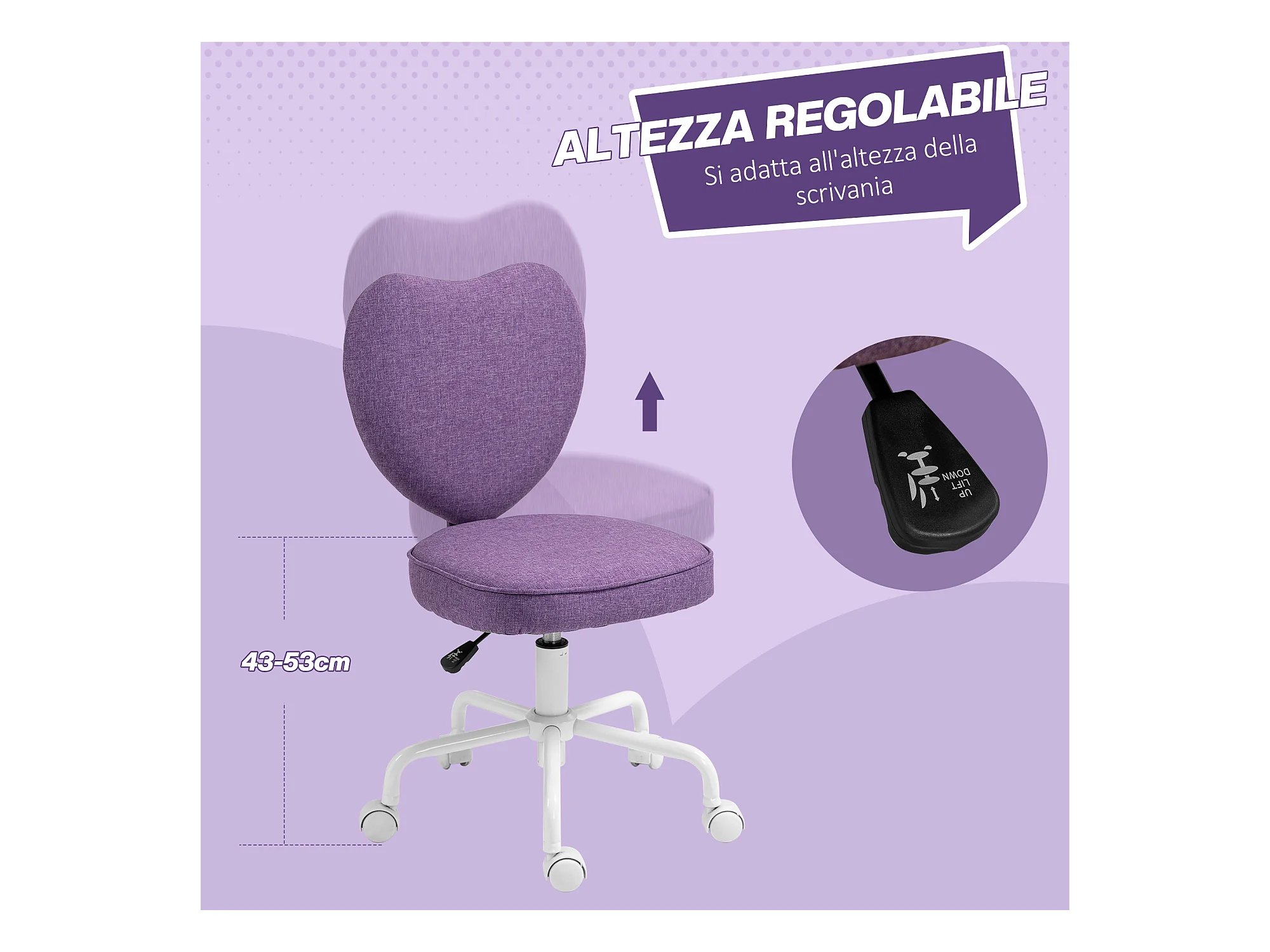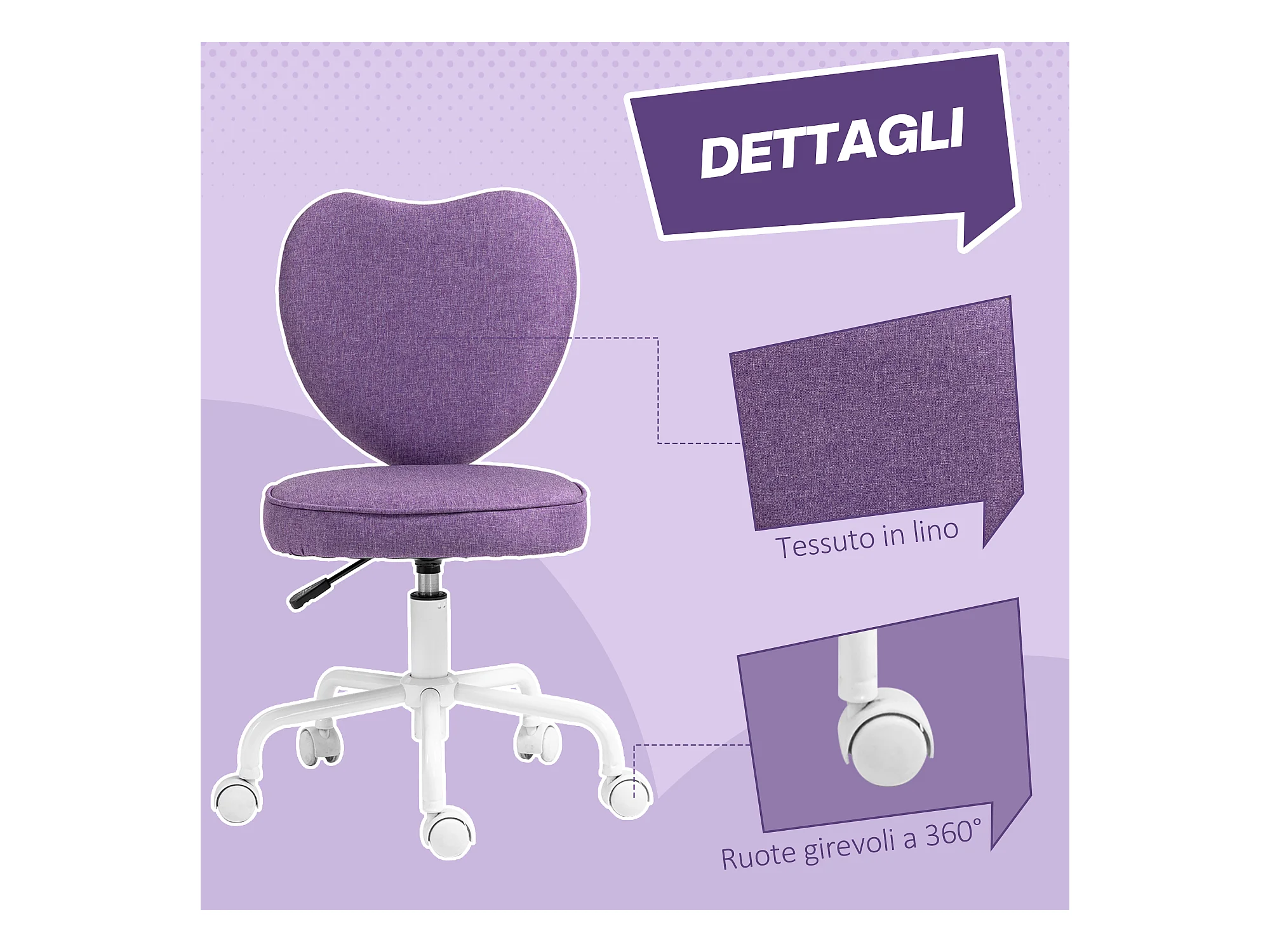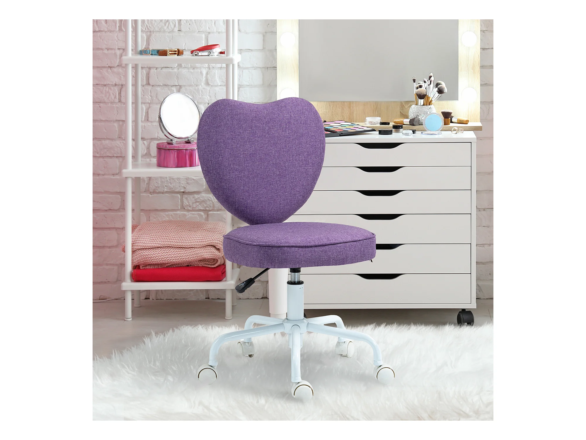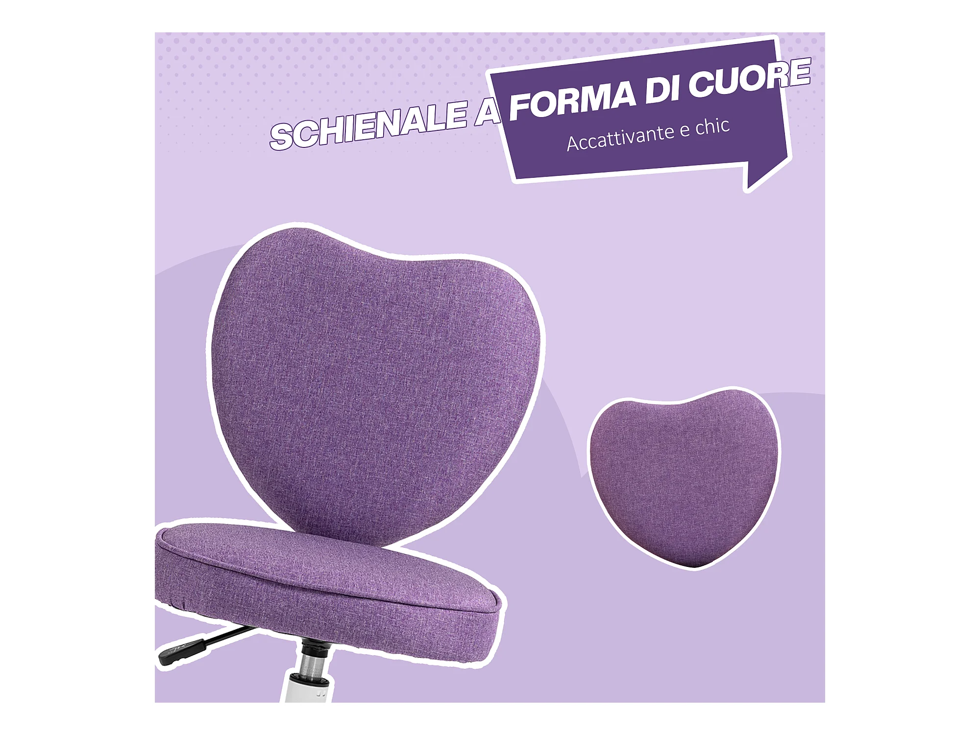 Sedia da scrivania a forma di cuore imbottita in tessuto viola