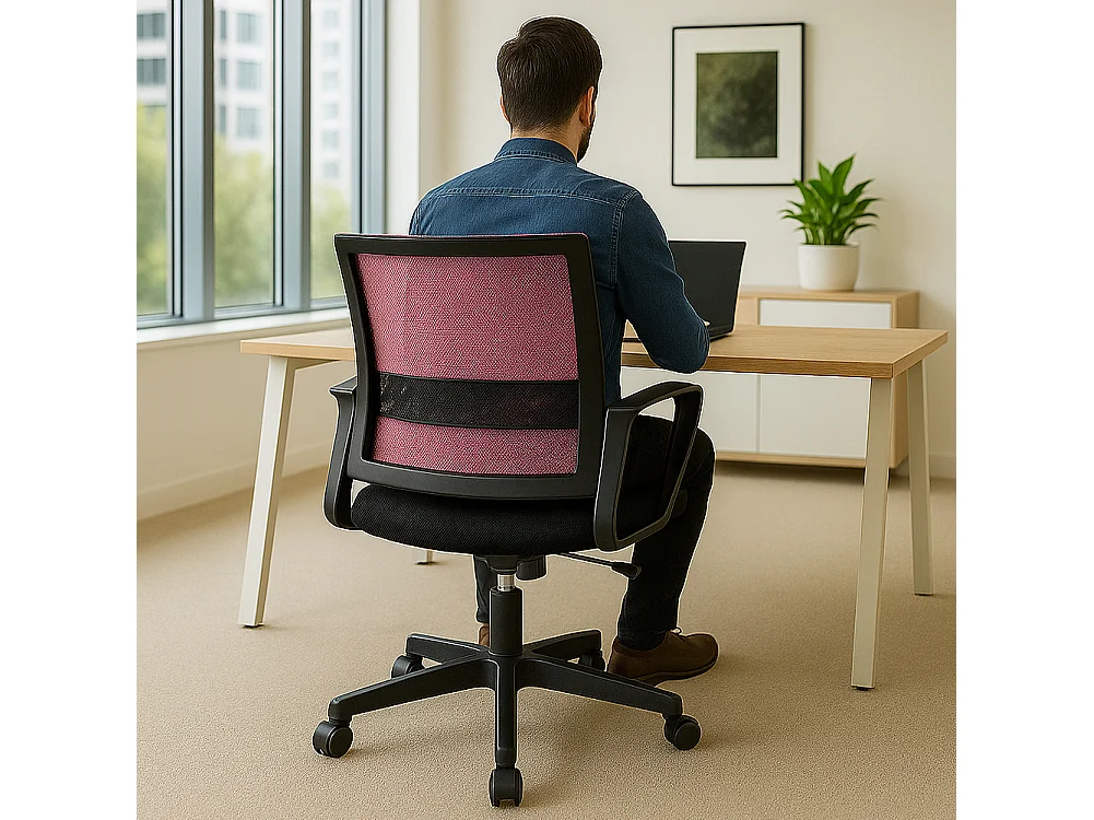 Sedia da Scrivania Nero e Rosa Ruote Piroettanti Seduta Ergonomica da Ufficio