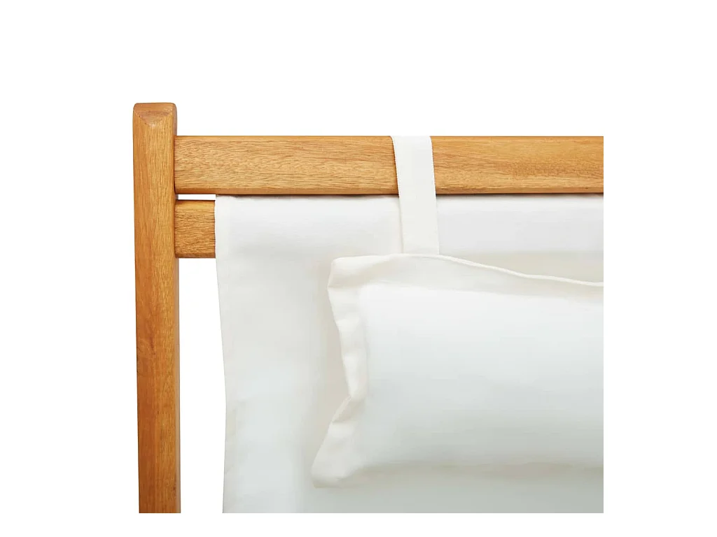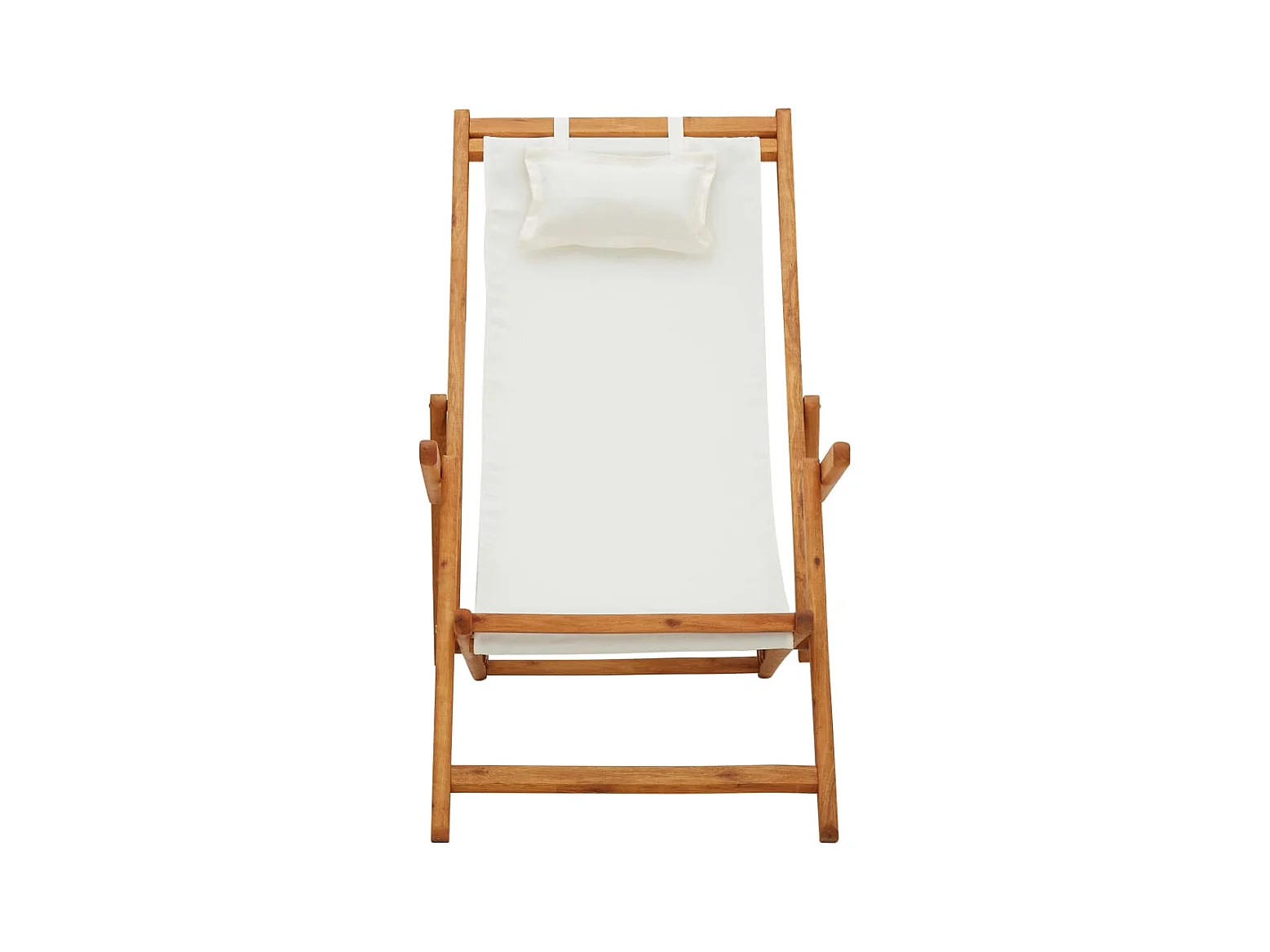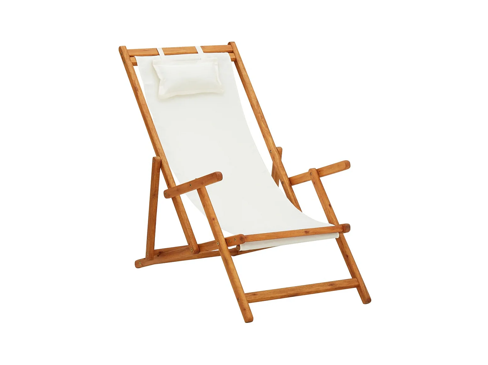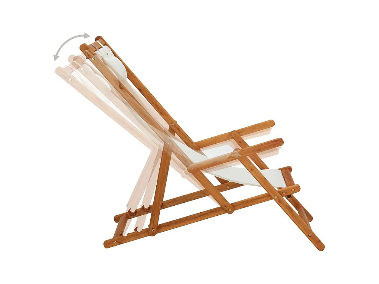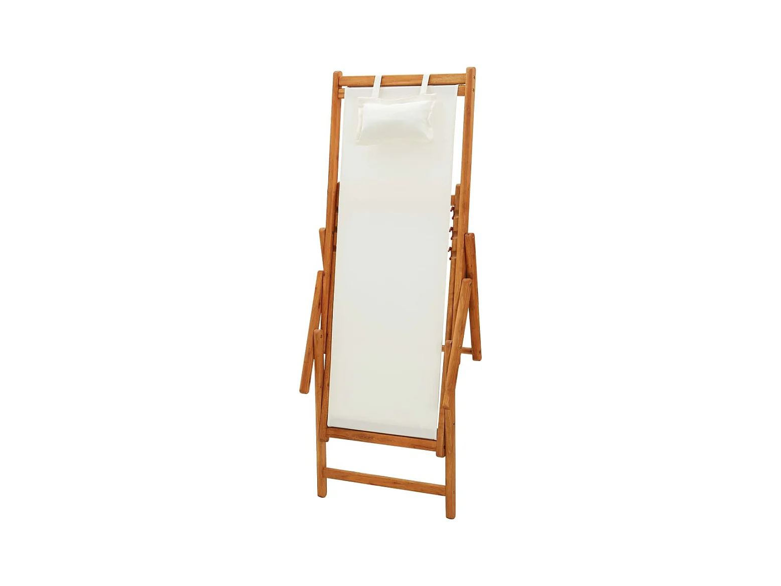 Sedia da spiaggia pieghevole in legno massello di eucalipto e tessuto color crema