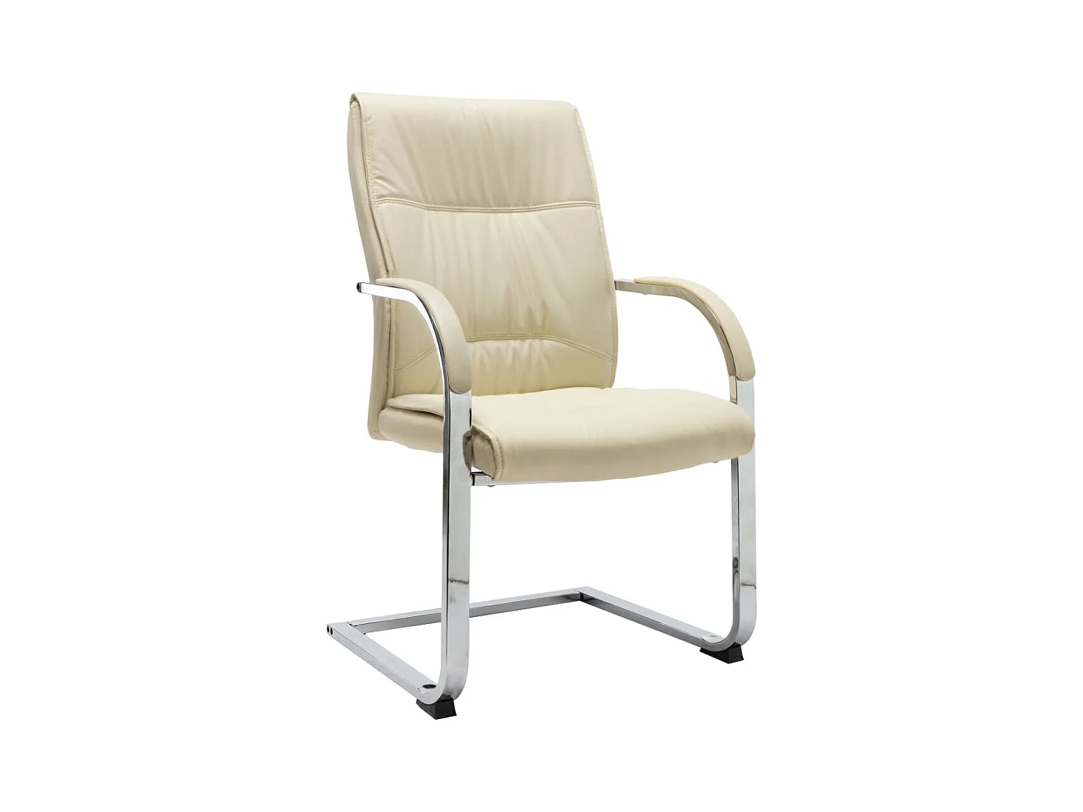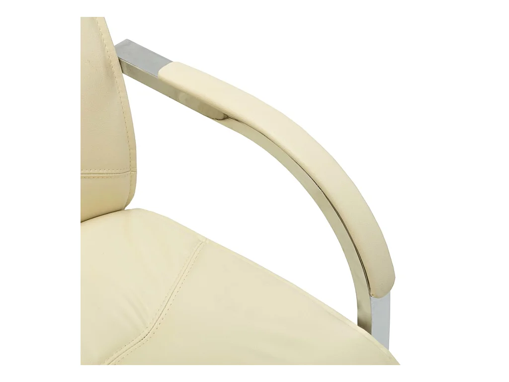Sedia da ufficio girevole color crema in legno curvato e similpelle