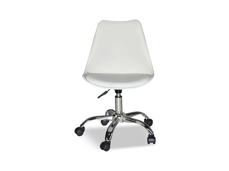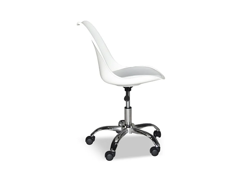 Chaise Bureau velours bianco con accoudoirs, pivotante, réglable et rembourrée 54 cm