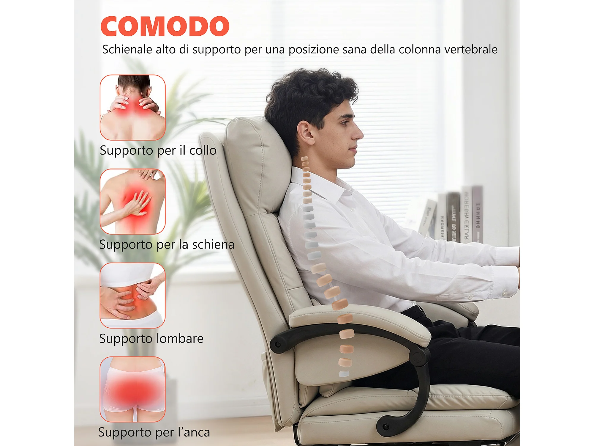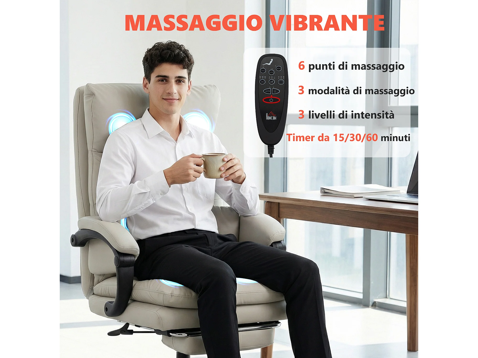 Sedia da ufficio con massaggio a 6 punti riscaldata grigio chiaro