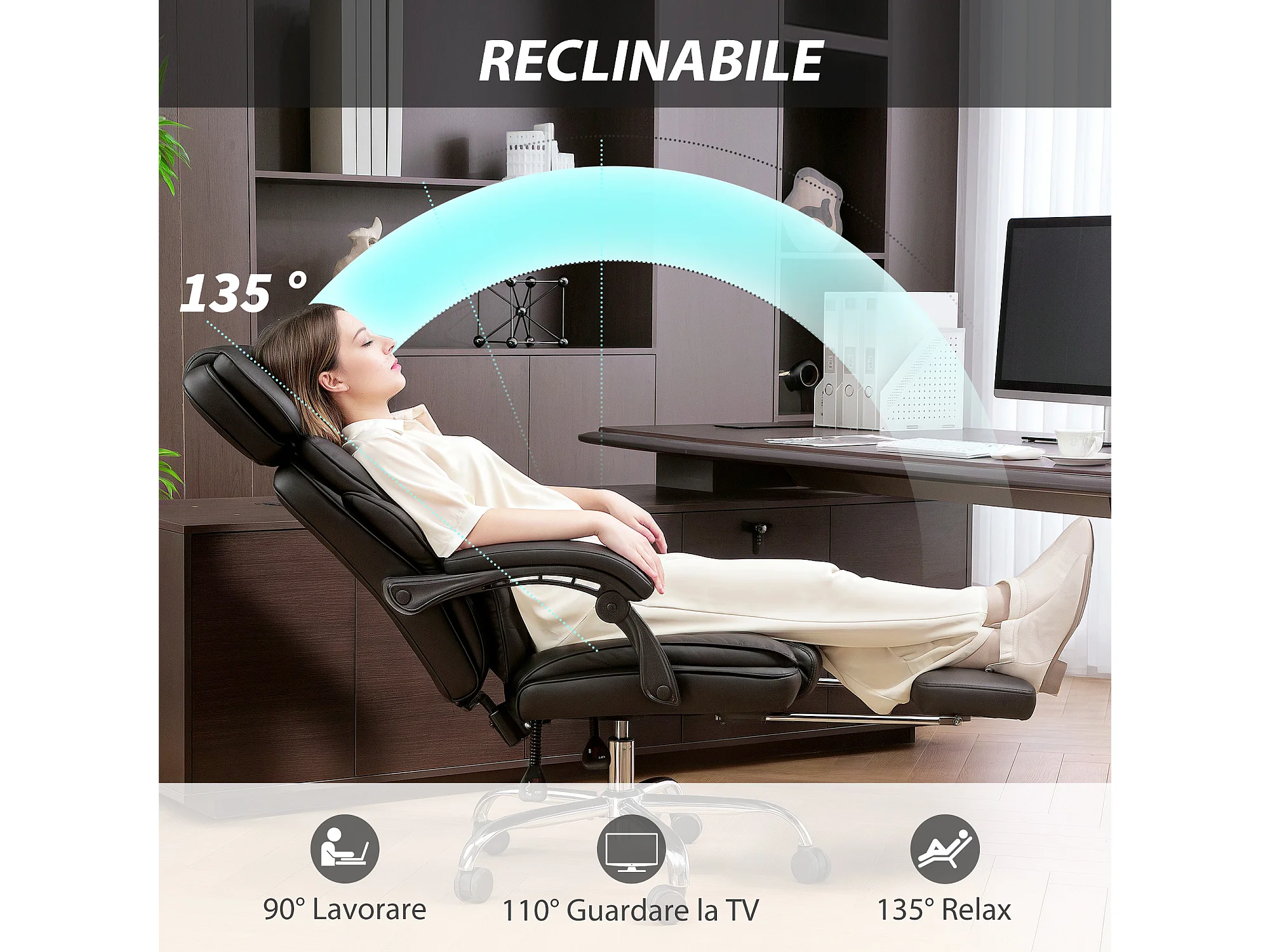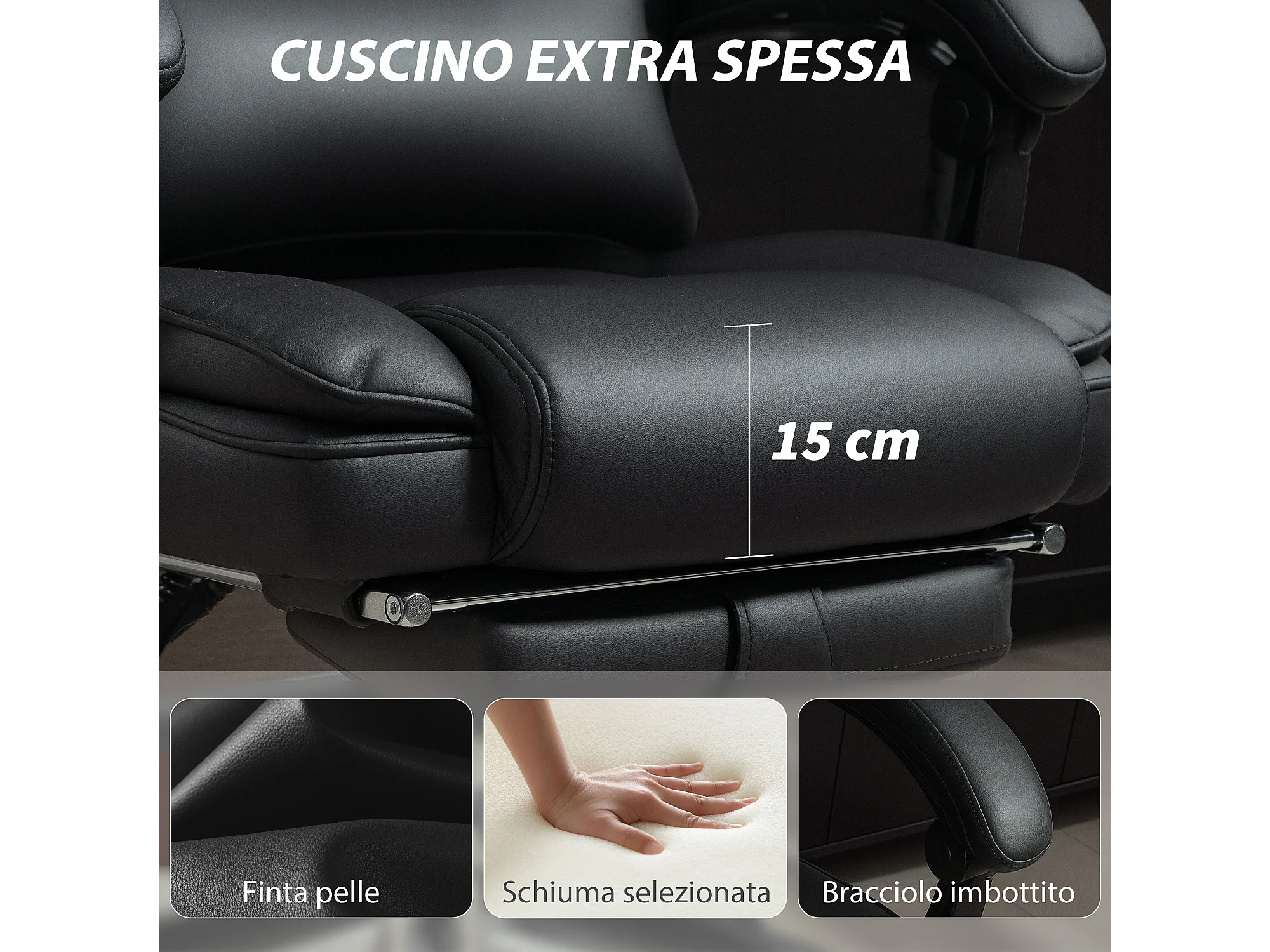 Sedia da ufficio con poggiapiedi supporto lombare e poggiatesta nero