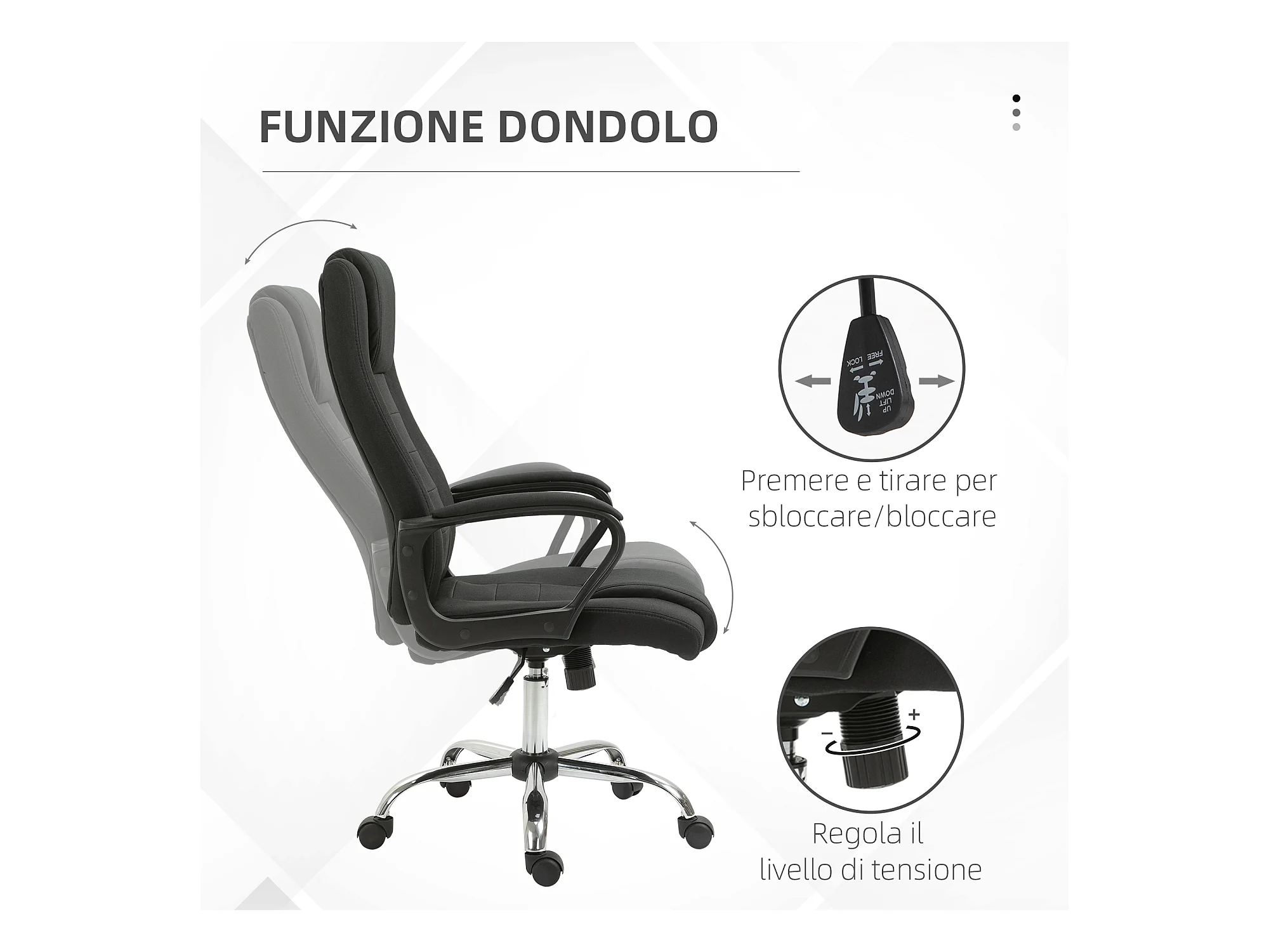 Sedia da ufficio ergonomica con funzione basculante, altezza regolabile, tessuto, nero (62x60x92-102 cm)