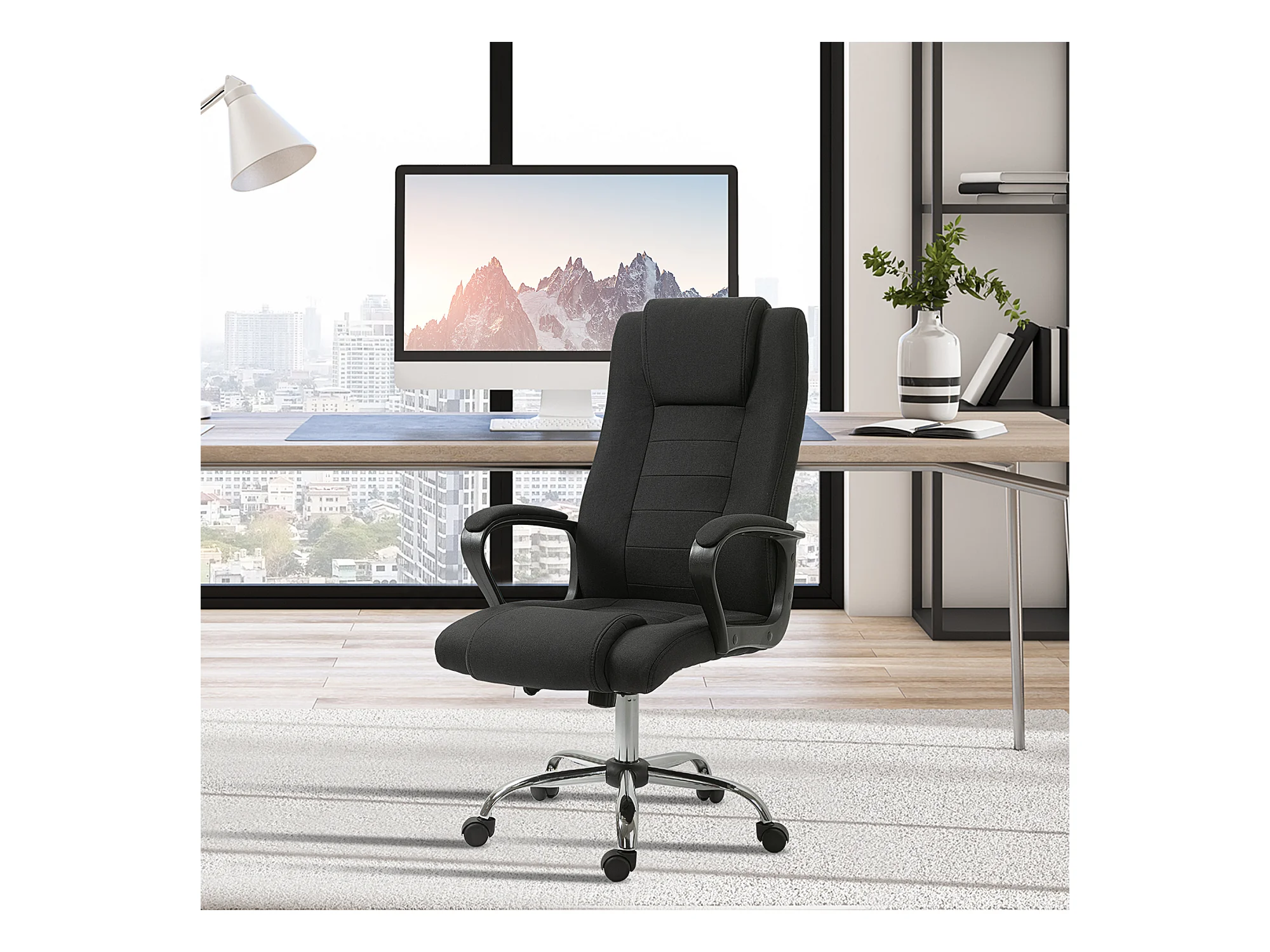 Sedia da ufficio ergonomica con poggiatesta e supporto lombare, sedia da ufficio girevole regolabile in altezza, tessuto in poliestere, nero (64x55x126 cm)