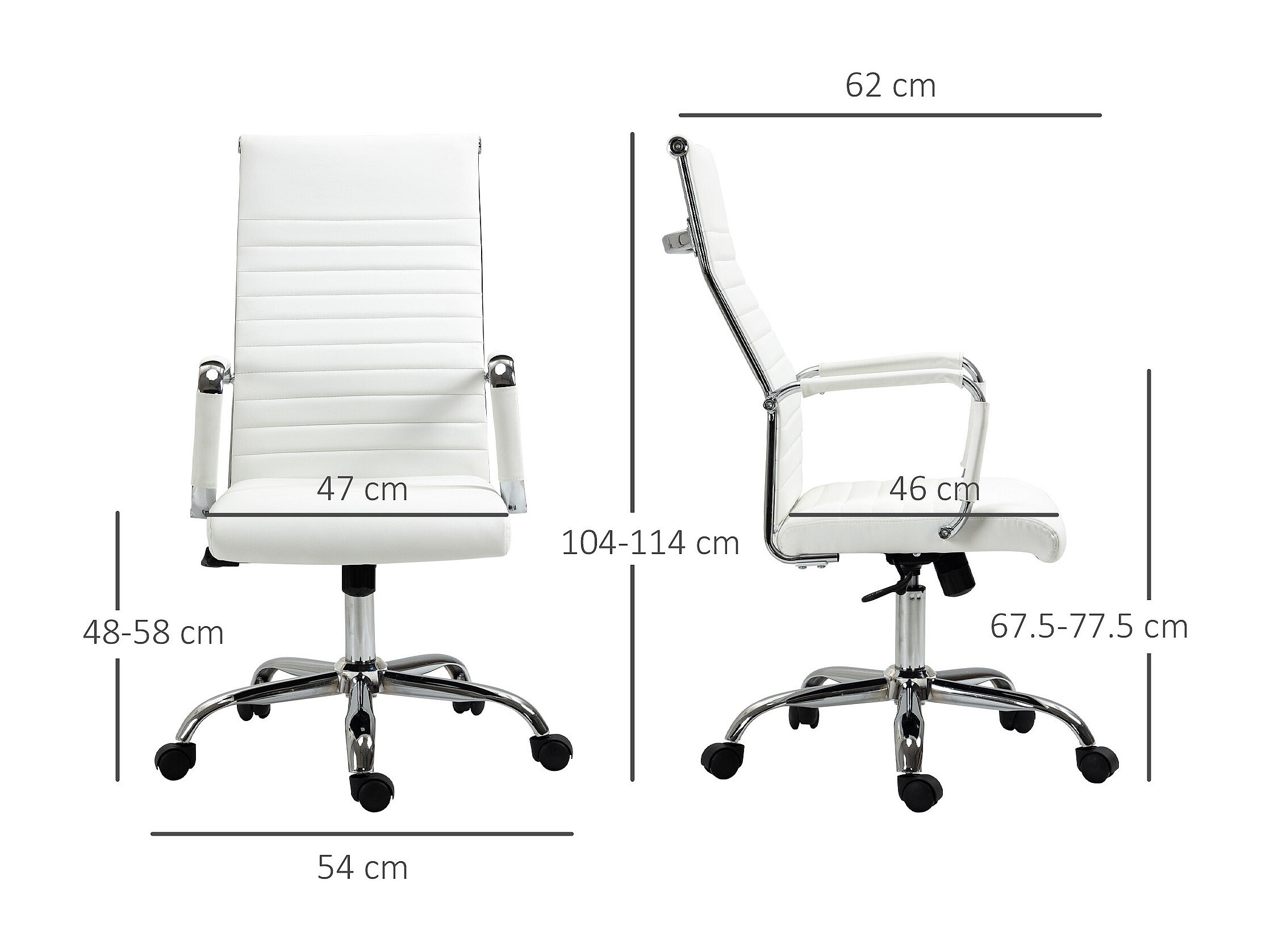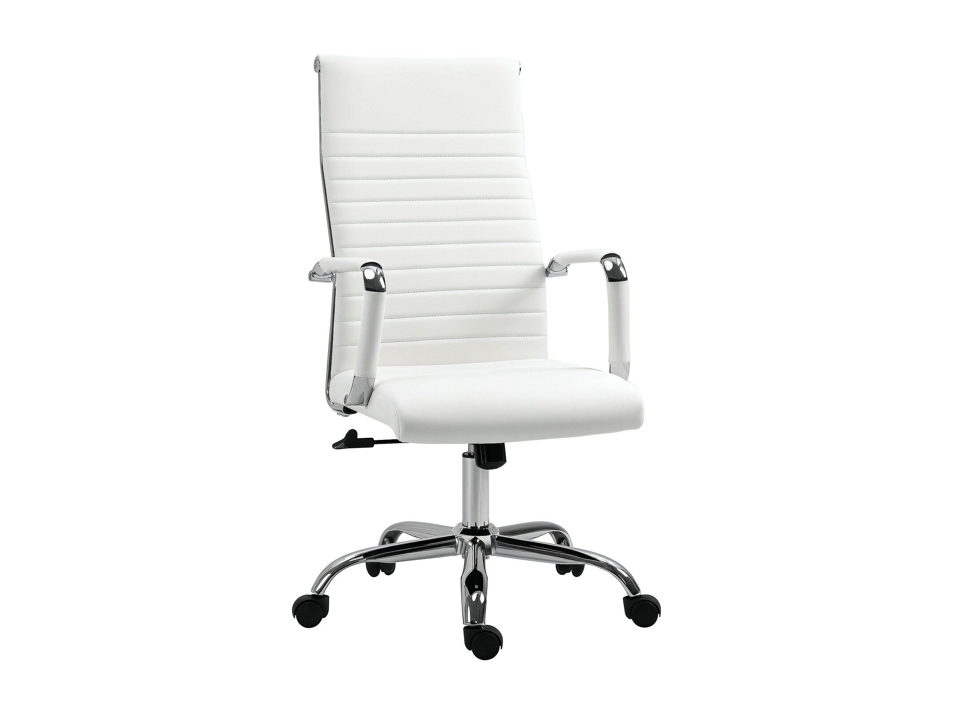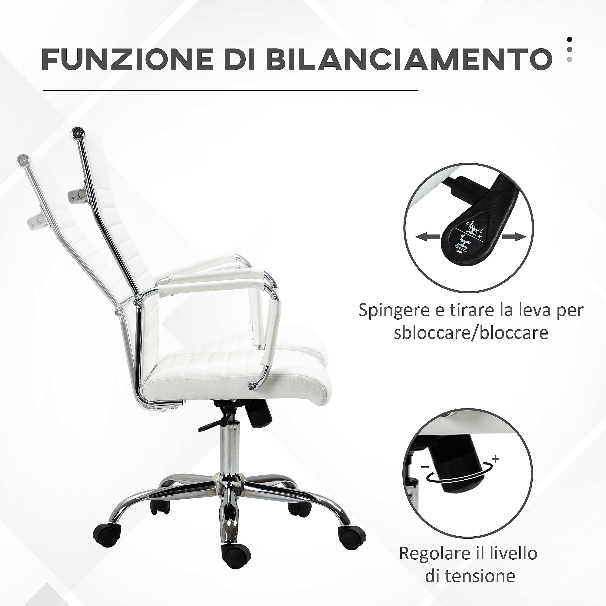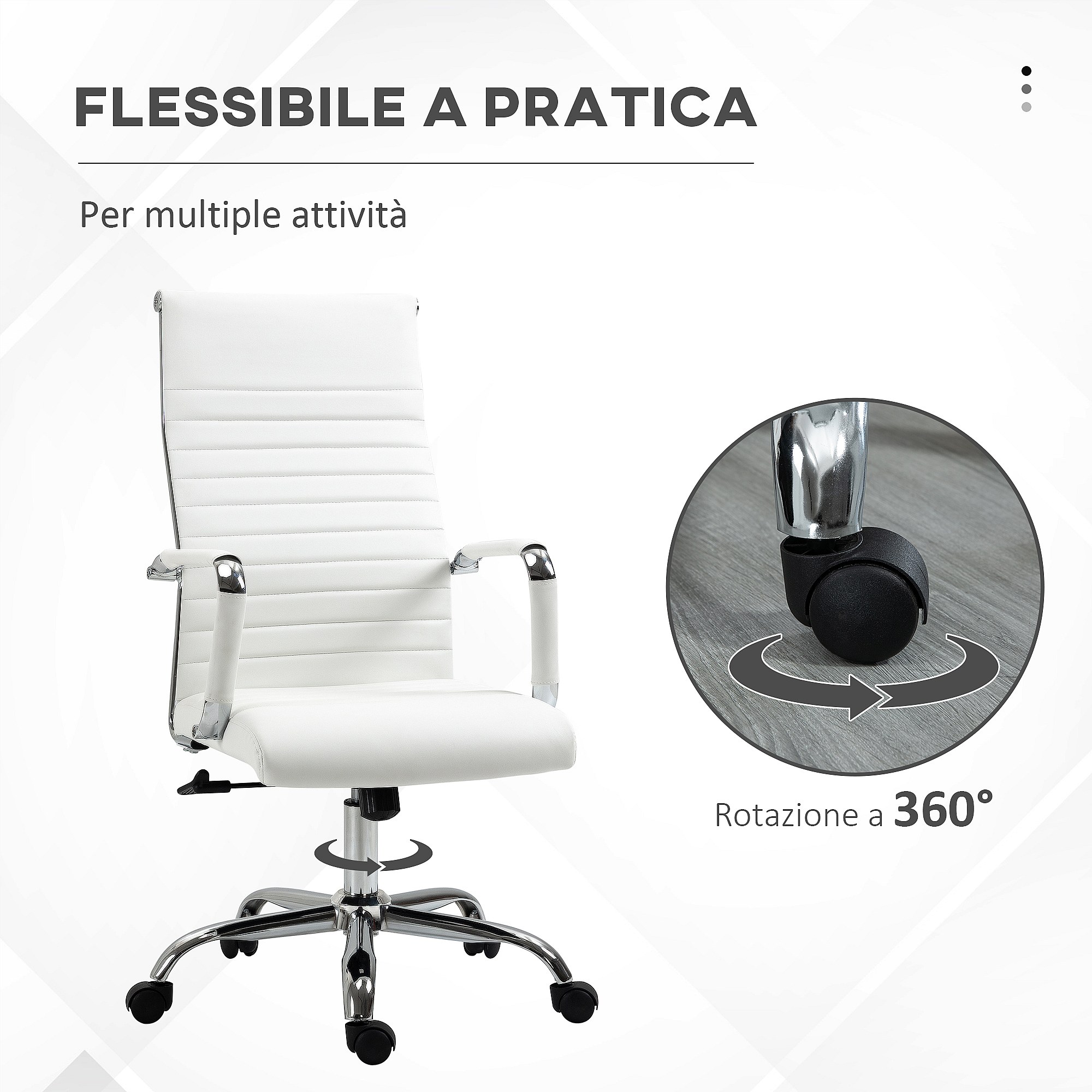 Sedia da ufficio ergonomica con funzione basculante, ruote girevoli a 360°, gambe in metallo, similpelle, bianca (54x62x104-114 cm)