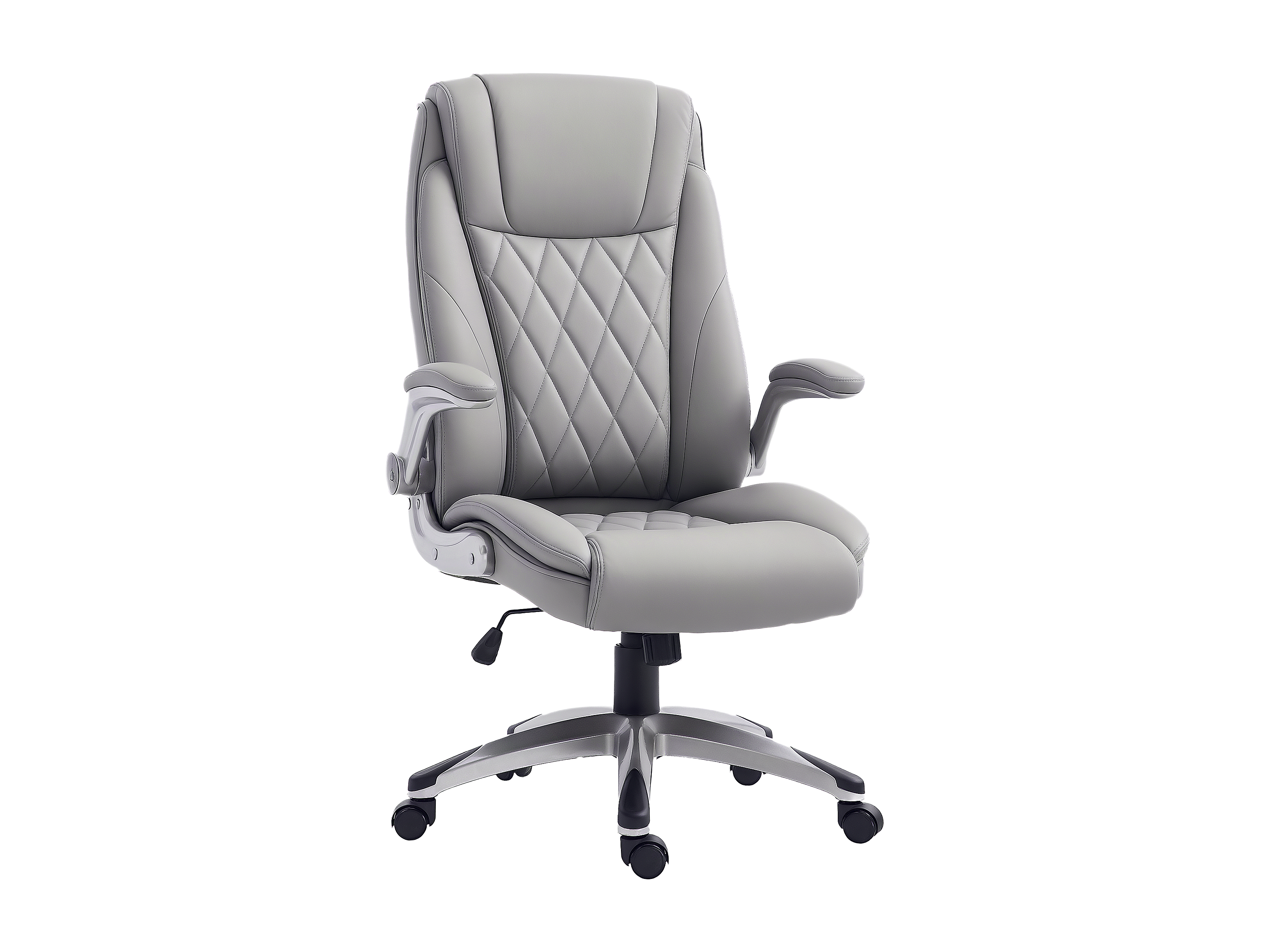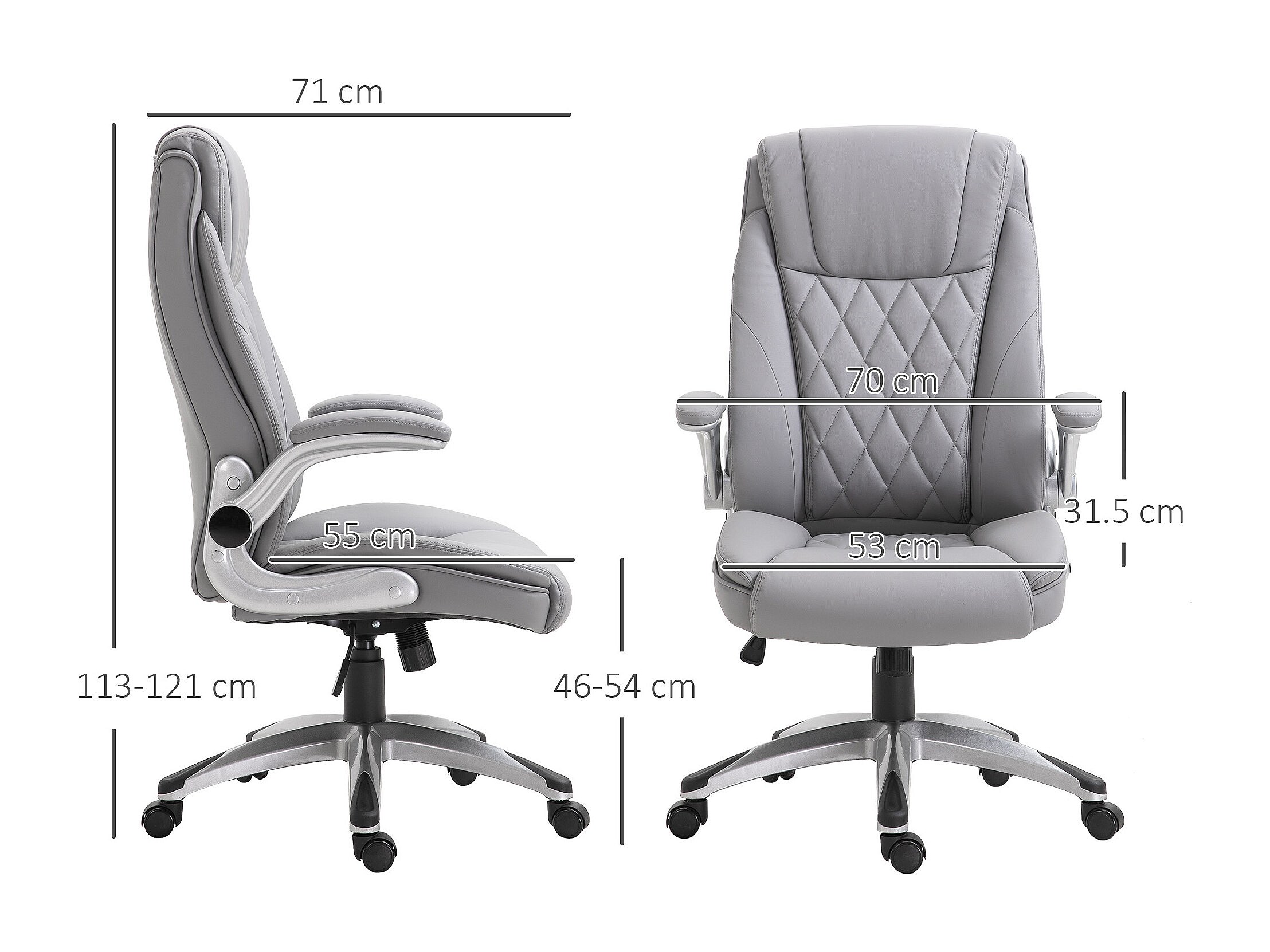 Sedia da ufficio ergonomica con funzione basculante, braccioli retrattili, in similpelle, grigio scuro (60x69x121 cm)
