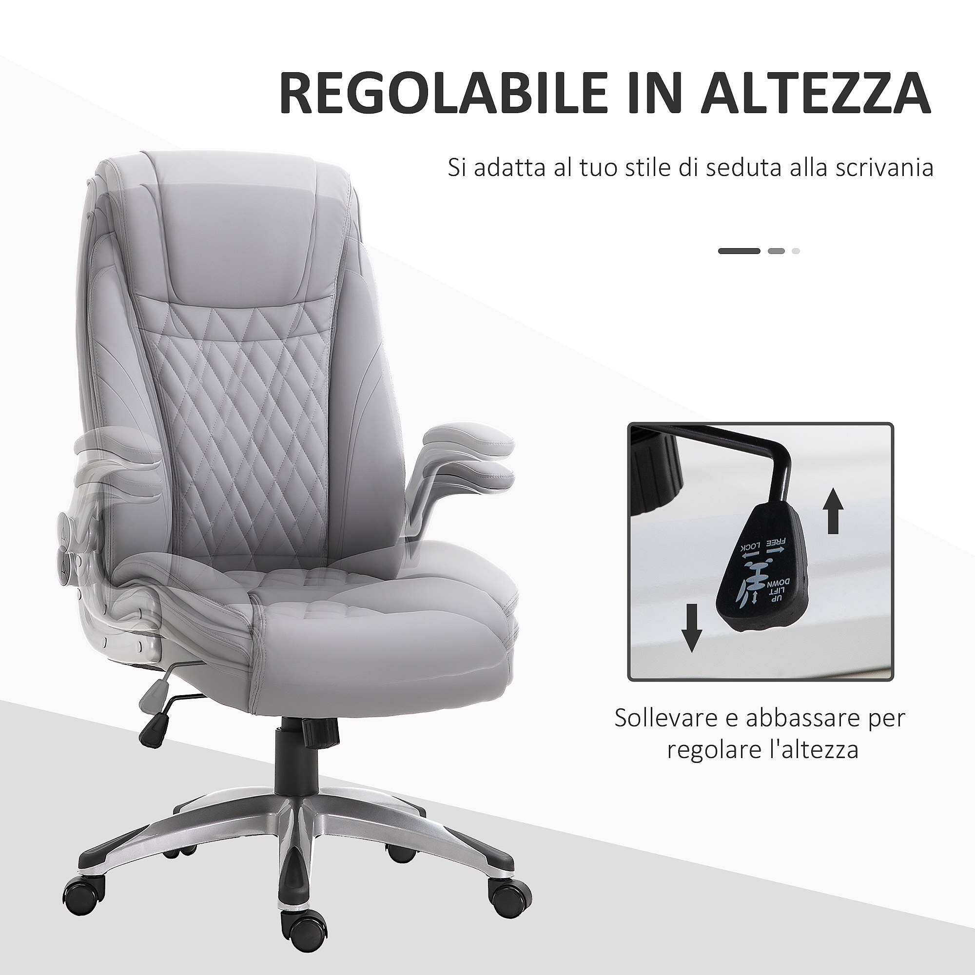 Sedia da ufficio ergonomica reclinabile, in similpelle grigio chiaro, poggiapiedi regolabile (66x72x122-130 cm)
