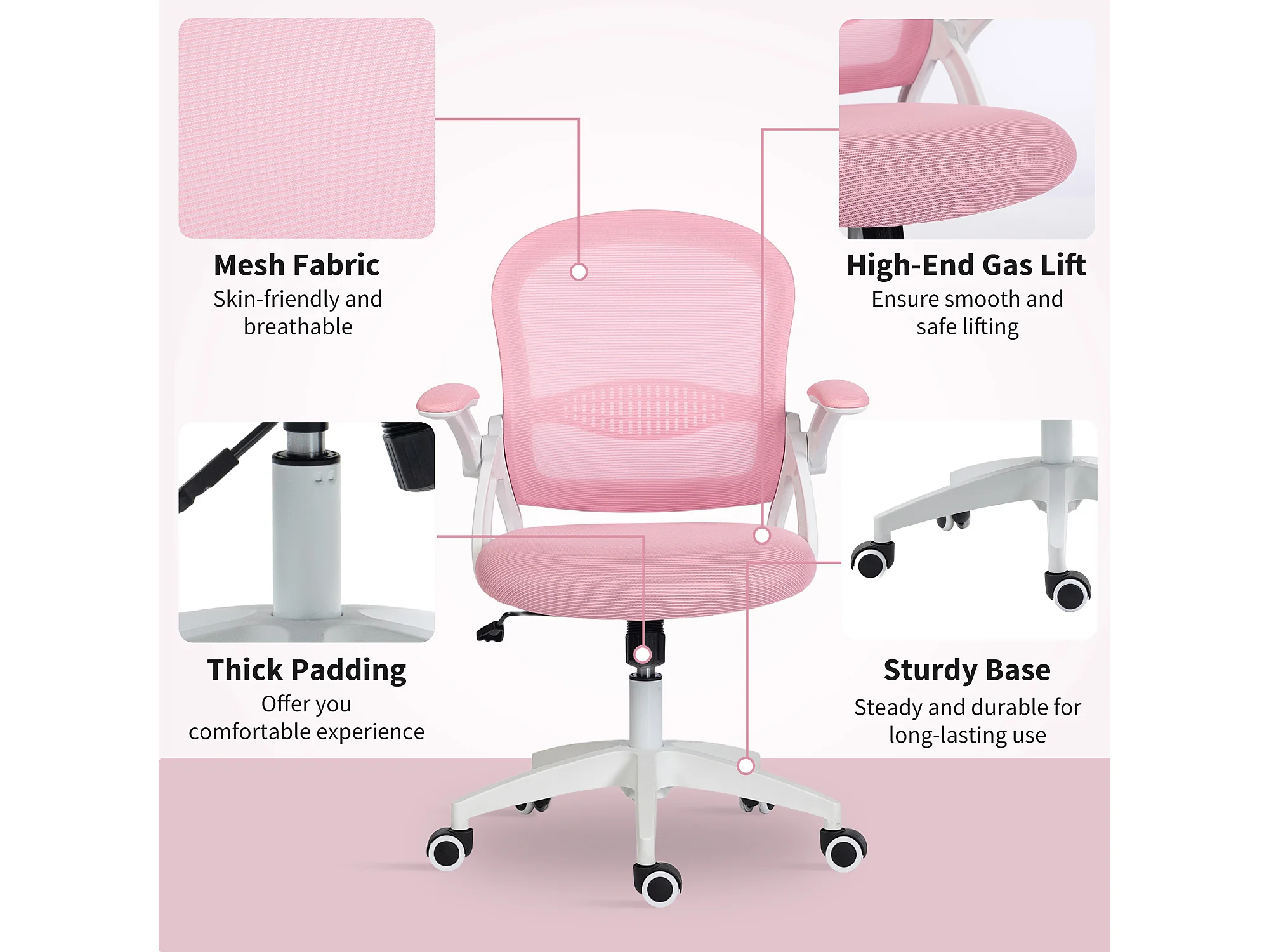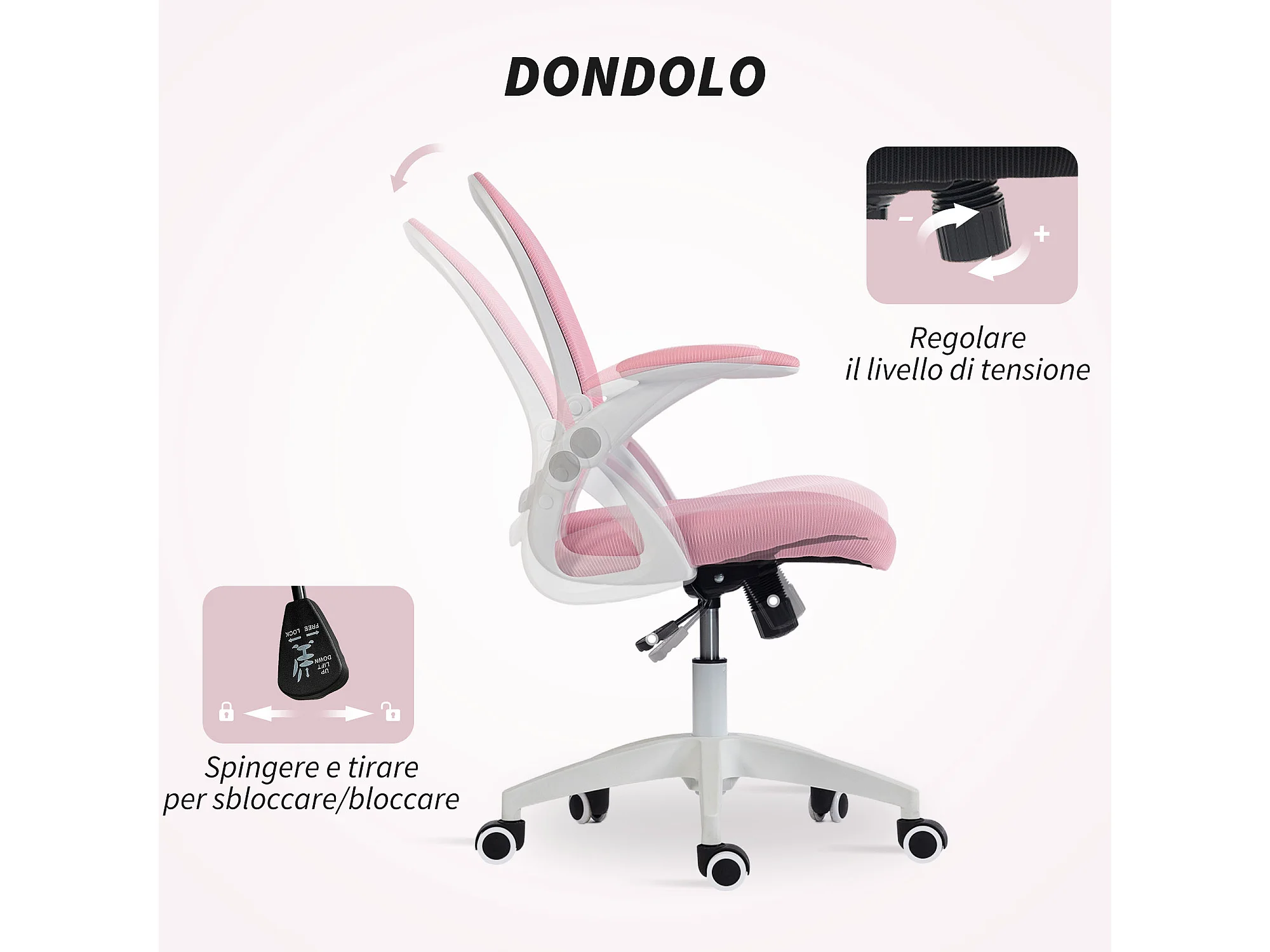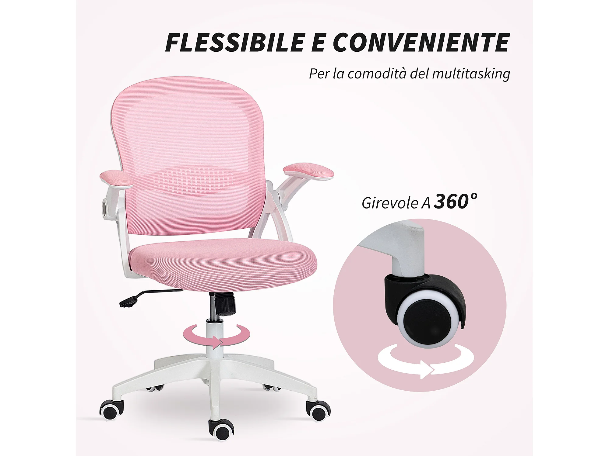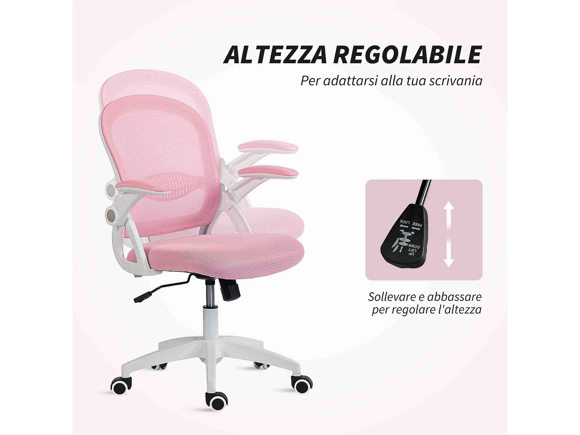 Sedia da ufficio ergonomica e regolabile con schienale a rete rosa