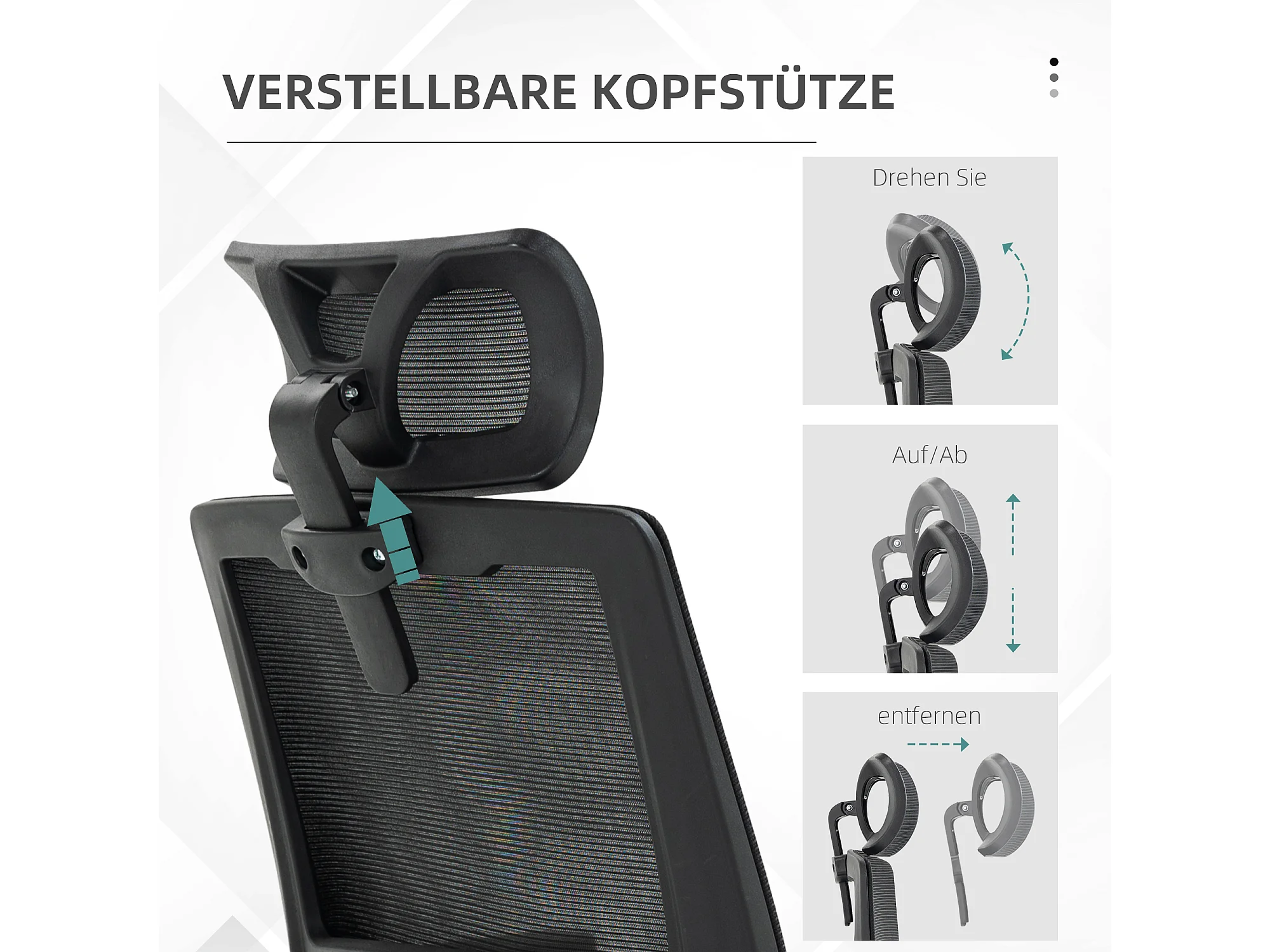 MilaniHome.it - sedia da ufficio ergonomica con poggiatesta e supporto lombare sedia da lavoro girevole regolabiledi coloreNero