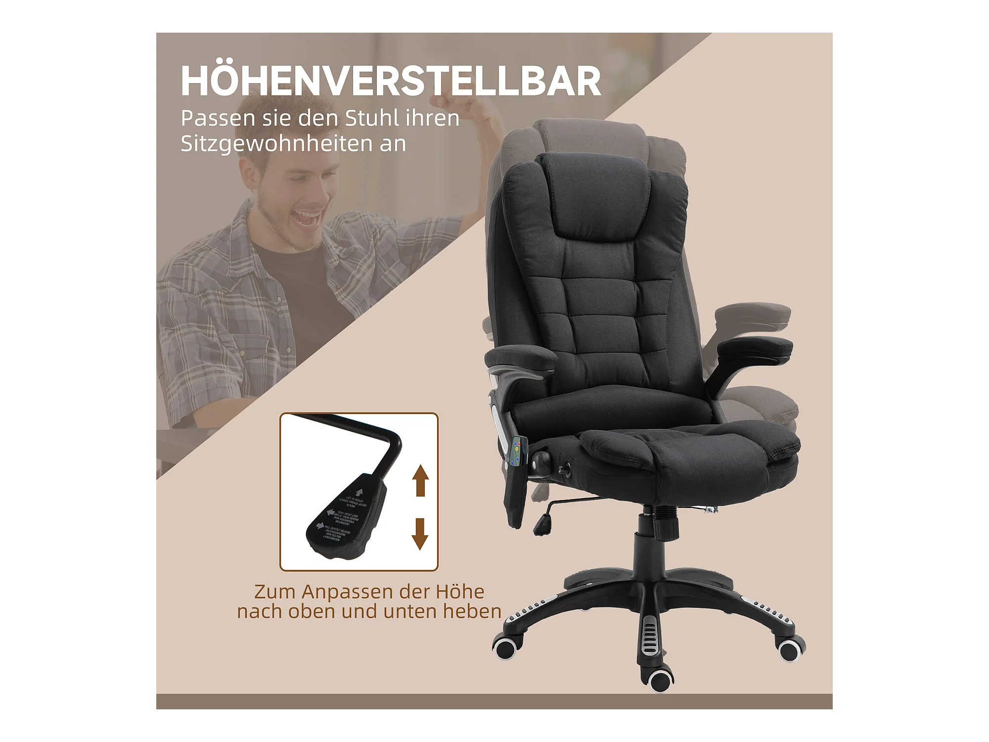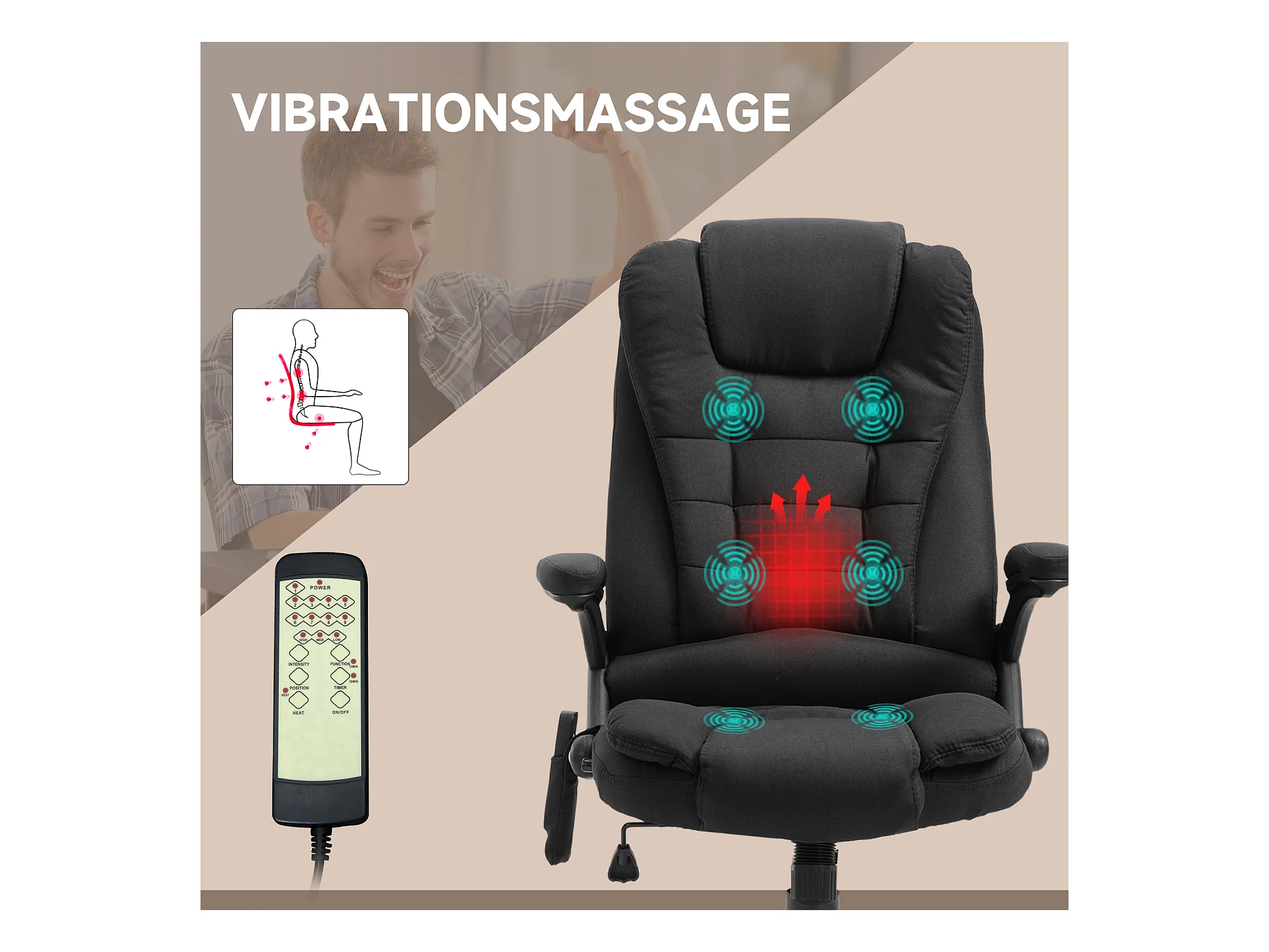 Fauteuil Bureau Ergonomique Massage con chauffage, réglable hauteur, pivotant, noir