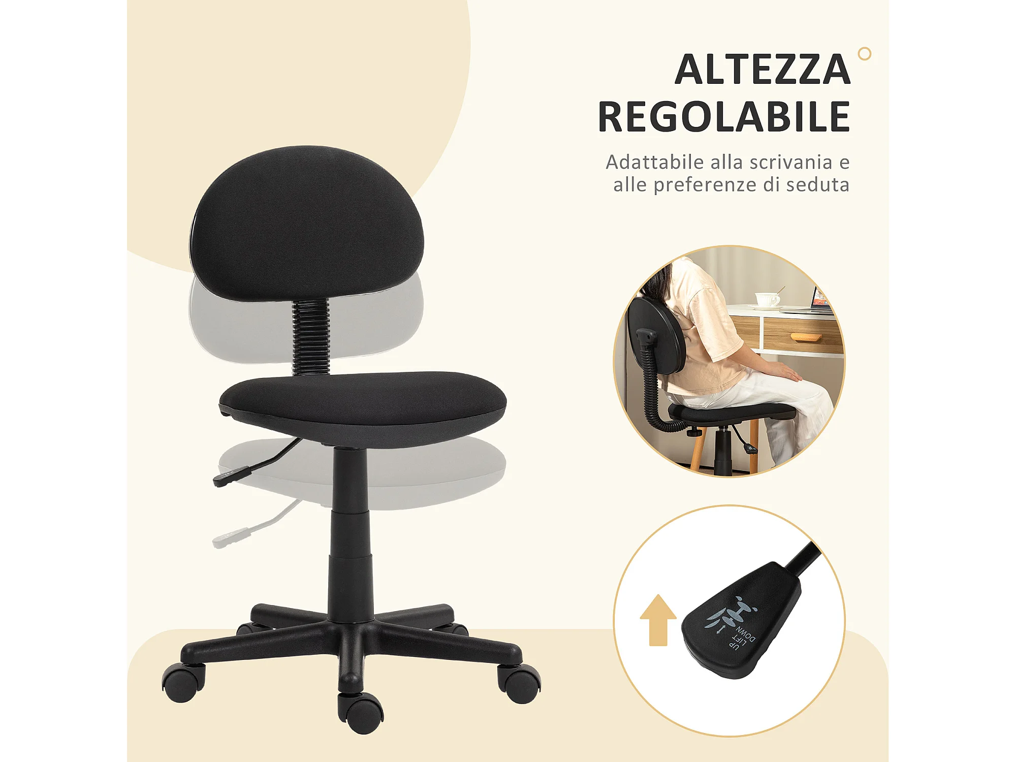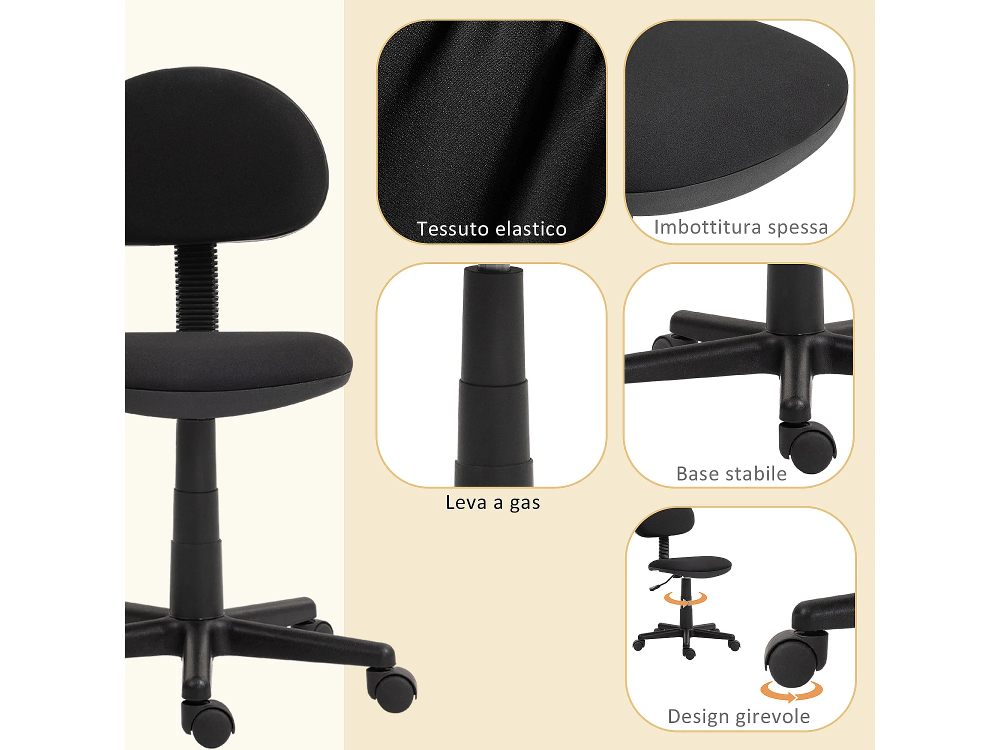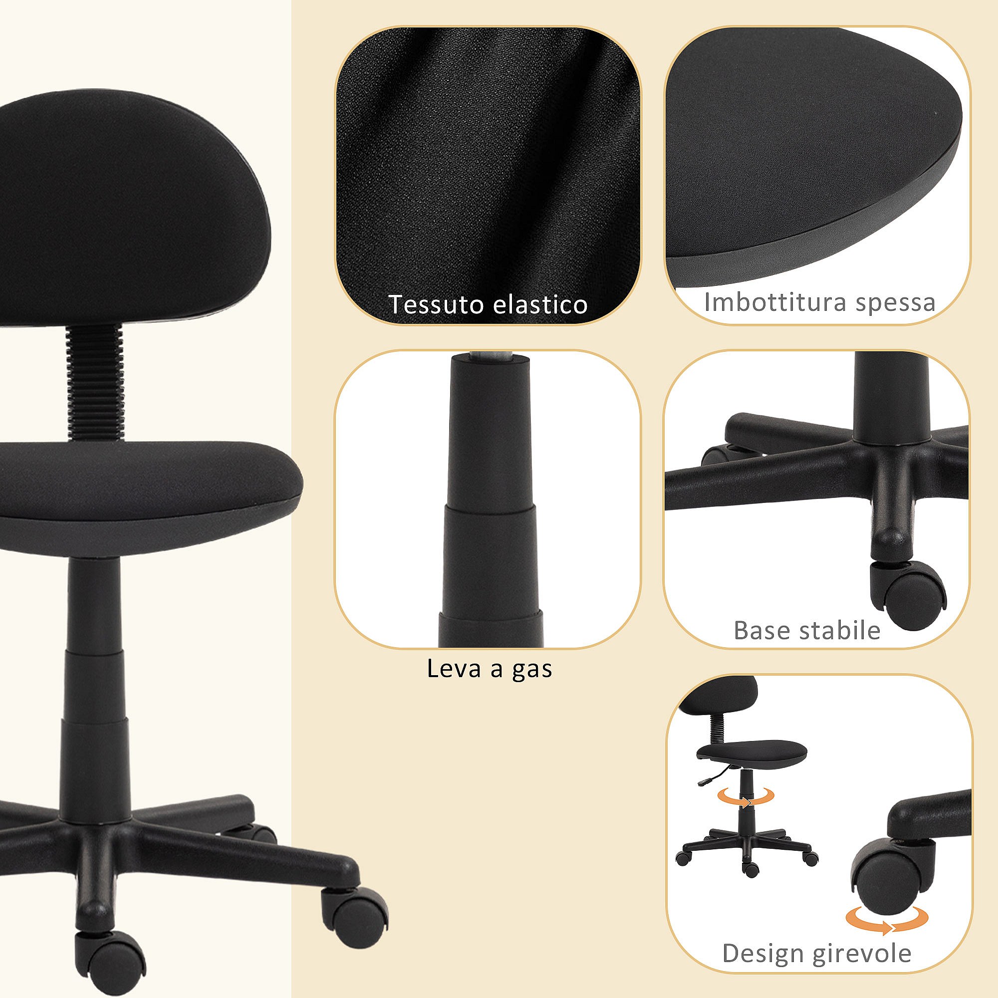 Sedia da ufficio girevole ad altezza regolabile in tessuto nera