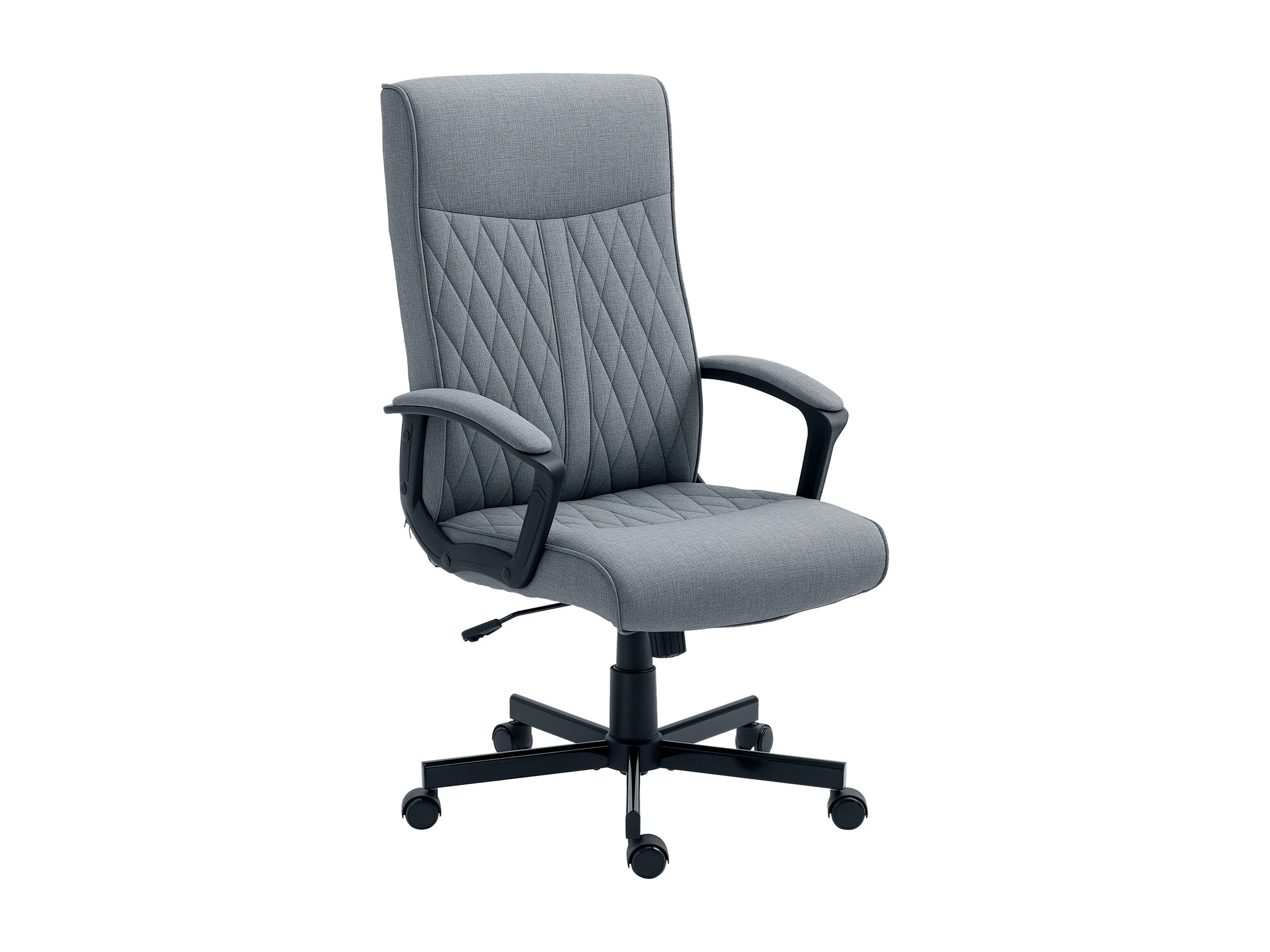 Sedia da ufficio ergonomica con funzione basculante, seduta imbottita, tessuto di lino grigio (65x65x84-94cm)