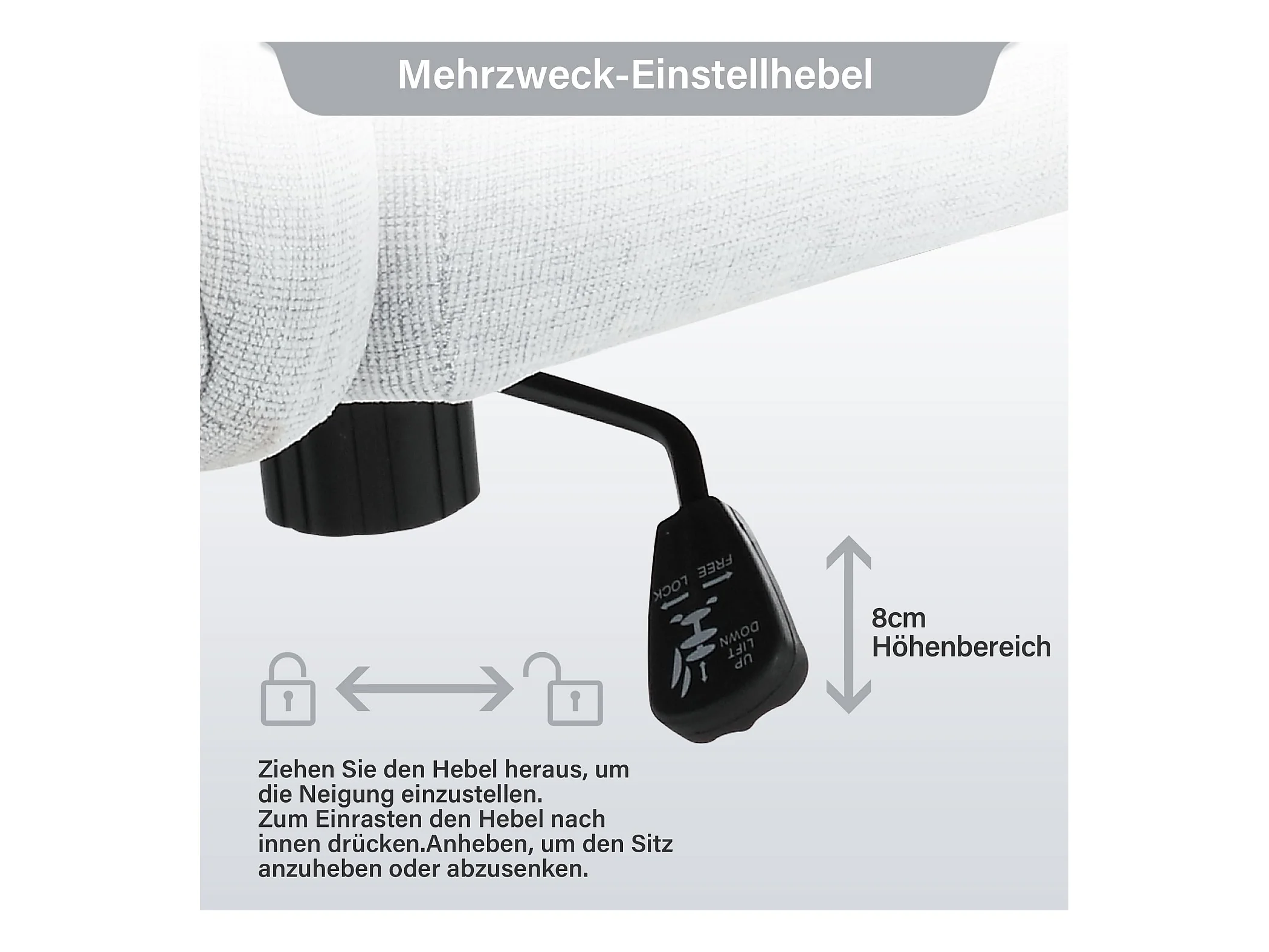 Sedia da ufficio ergonomica con schienale regolabile, tessuto di lino, grigio chiaro (66x70x116-124 cm)