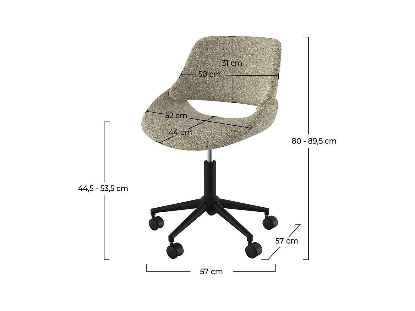 Sedia da ufficio girevole e regolabile in tessuto bouclé beige - Dune