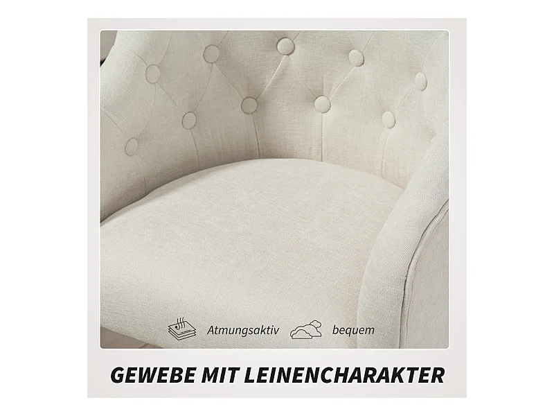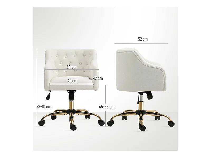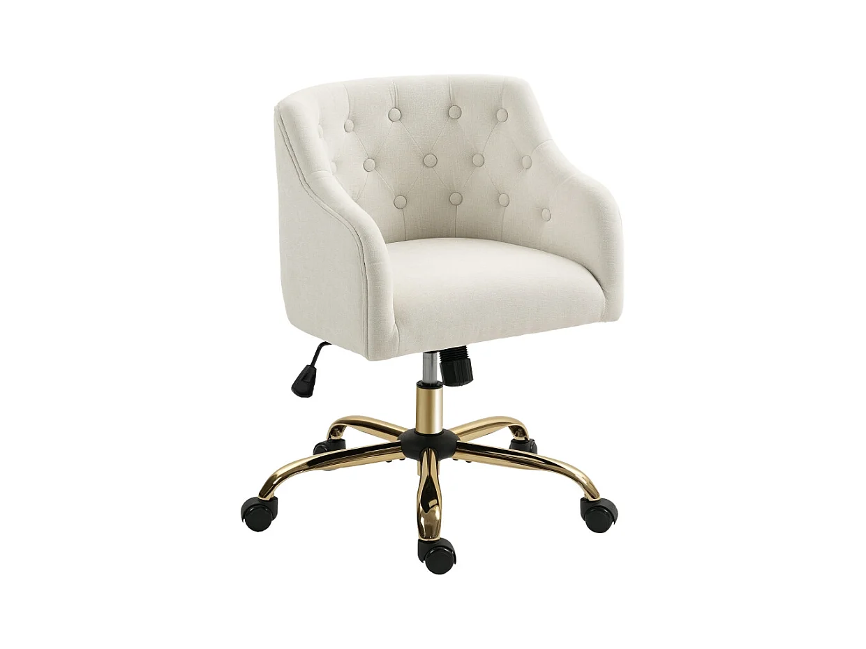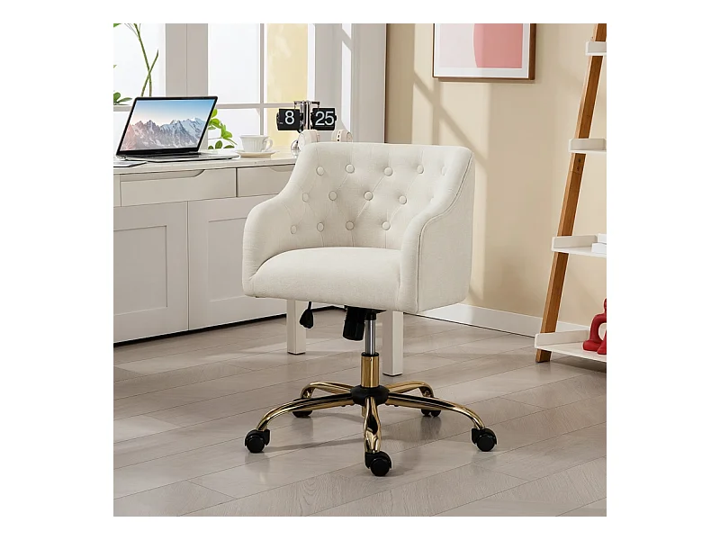 Sedia da ufficio girevole in tessuto foderato regolabile con cartella capitonné per l'home office beige