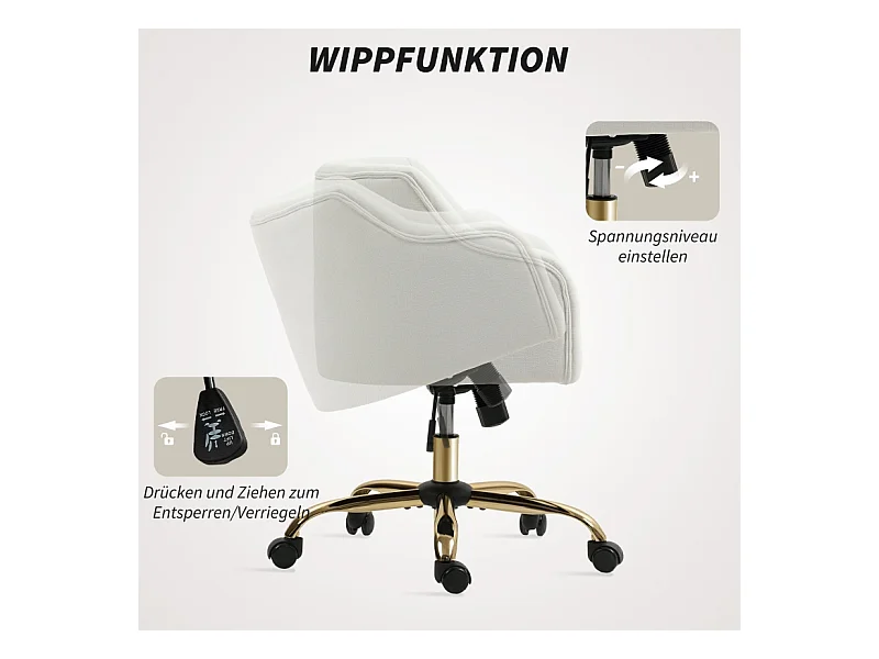 Sedia da ufficio girevole in velluto con comodini regolabili alta crema 60x61x79-88cm