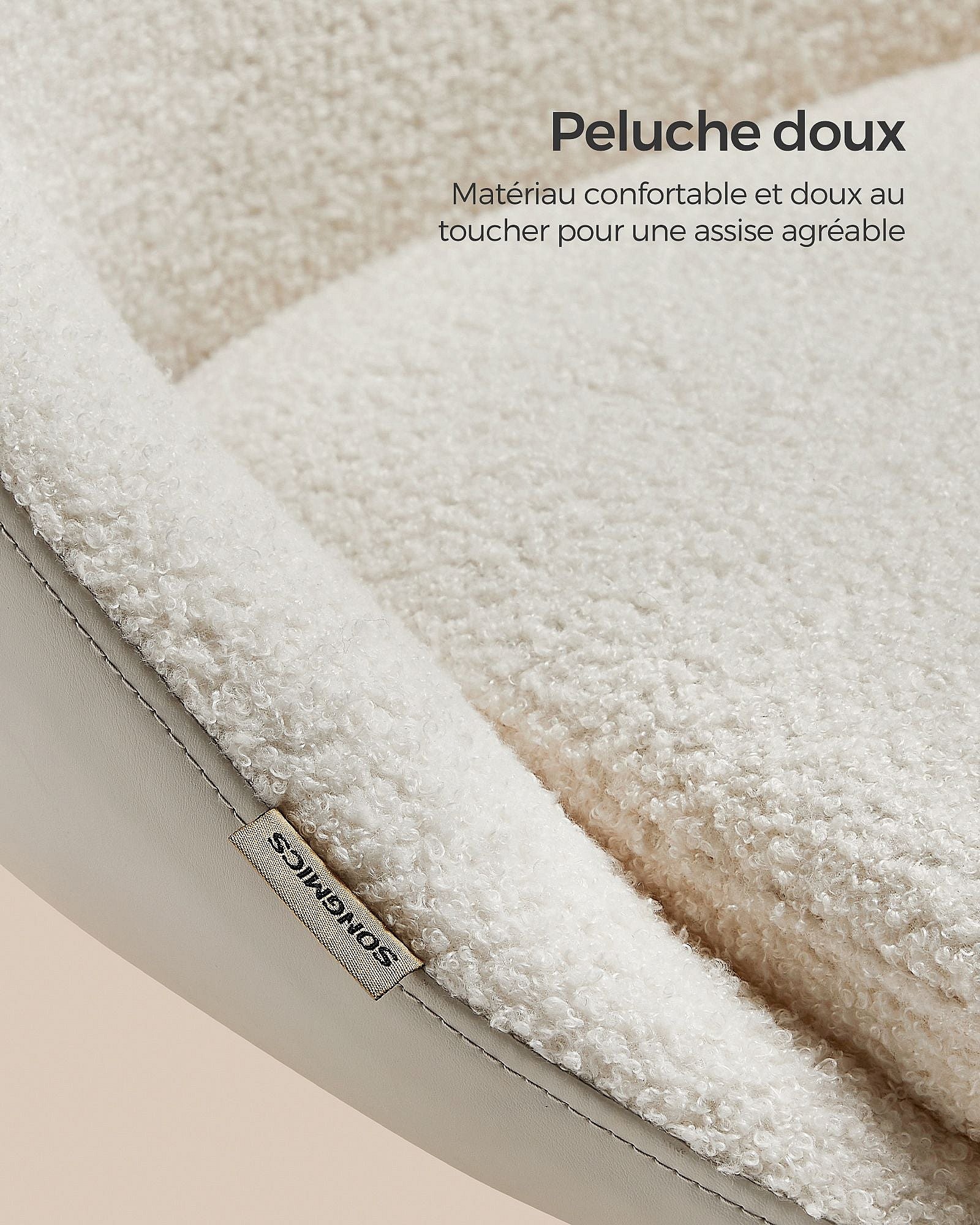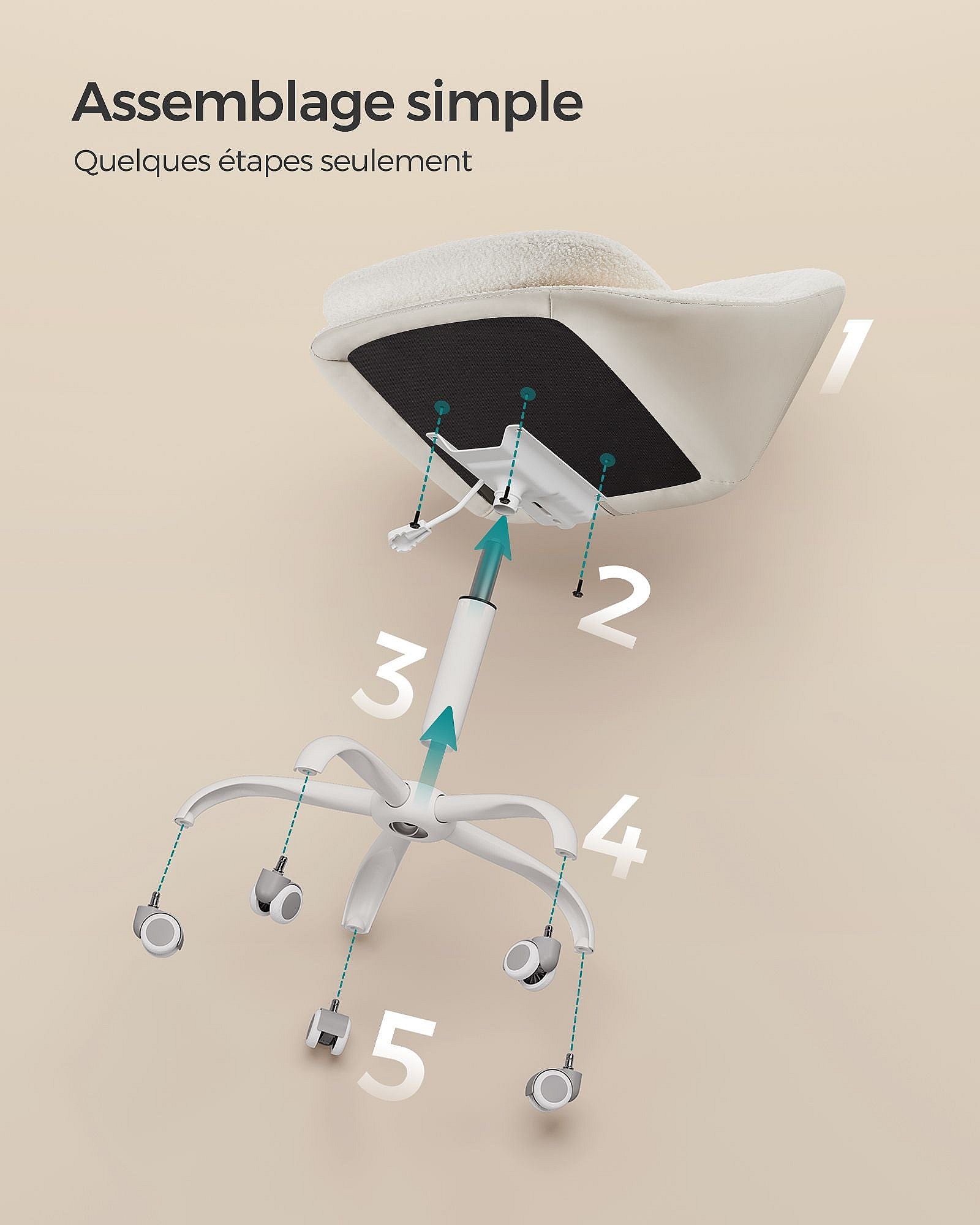 Sedia da ufficio girevole in velluto con comodini regolabili alta crema 60x61x79-88cm